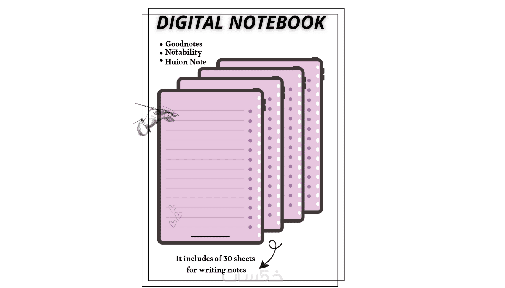 تصميم واحد لدفتر ملاحظات ع شكل منتج رقمي PDF/ PNGلتدوين ملاحظاتكم بشكل مرتب وجذاب ع الاجهزه اللوحية .