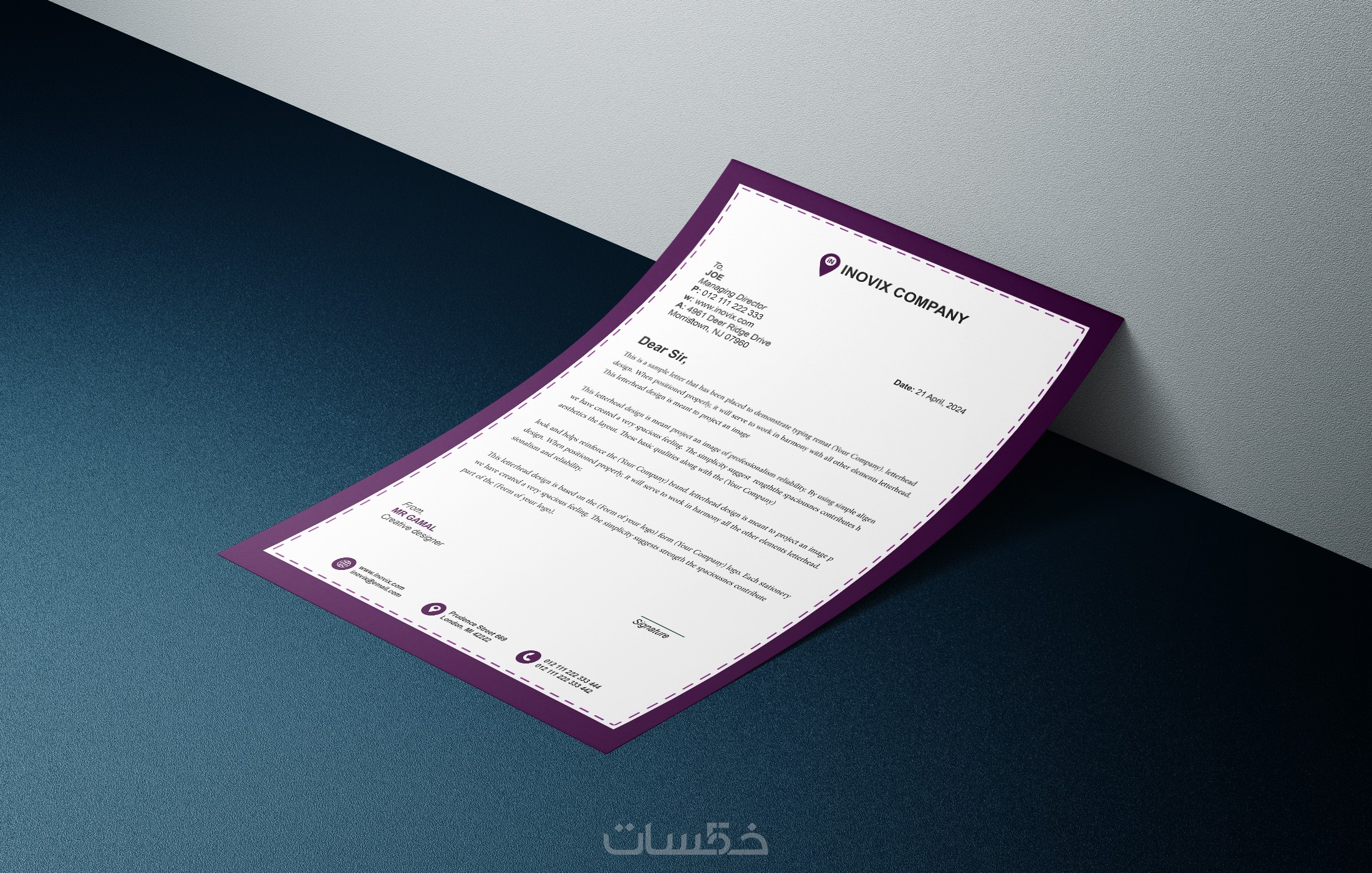 - تصميم عدد 2 letterhead مختلفين.