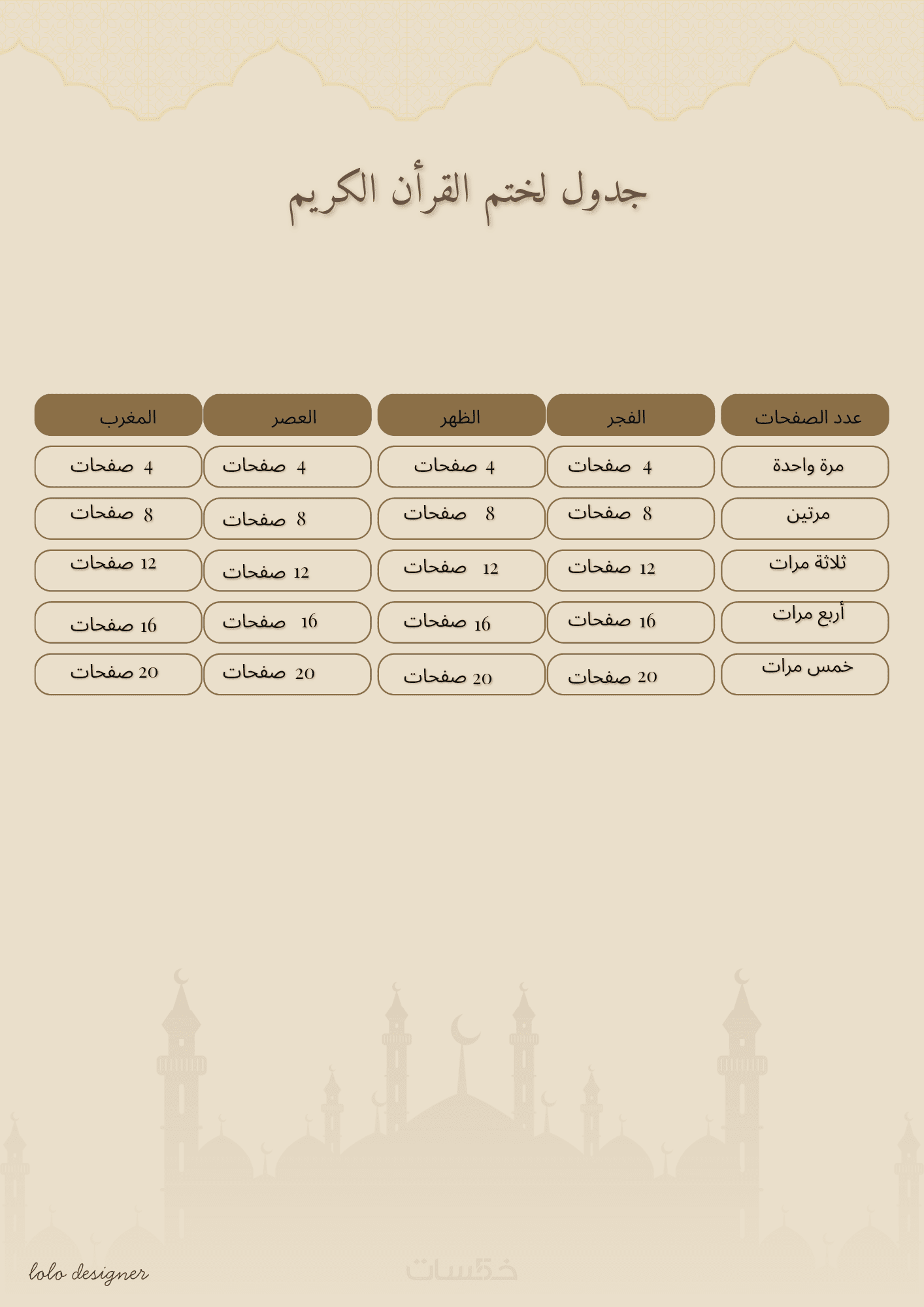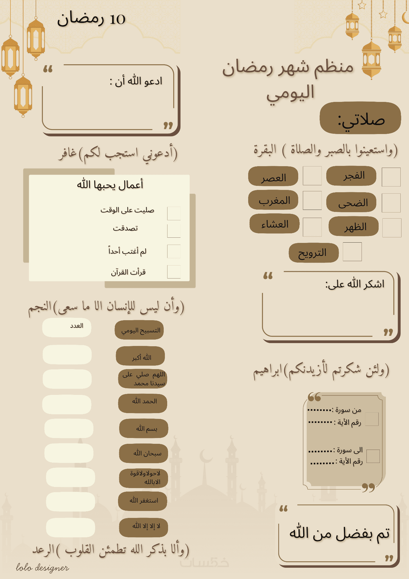 تصميم مرتب وواضح لكل يوم من أيام رمضان