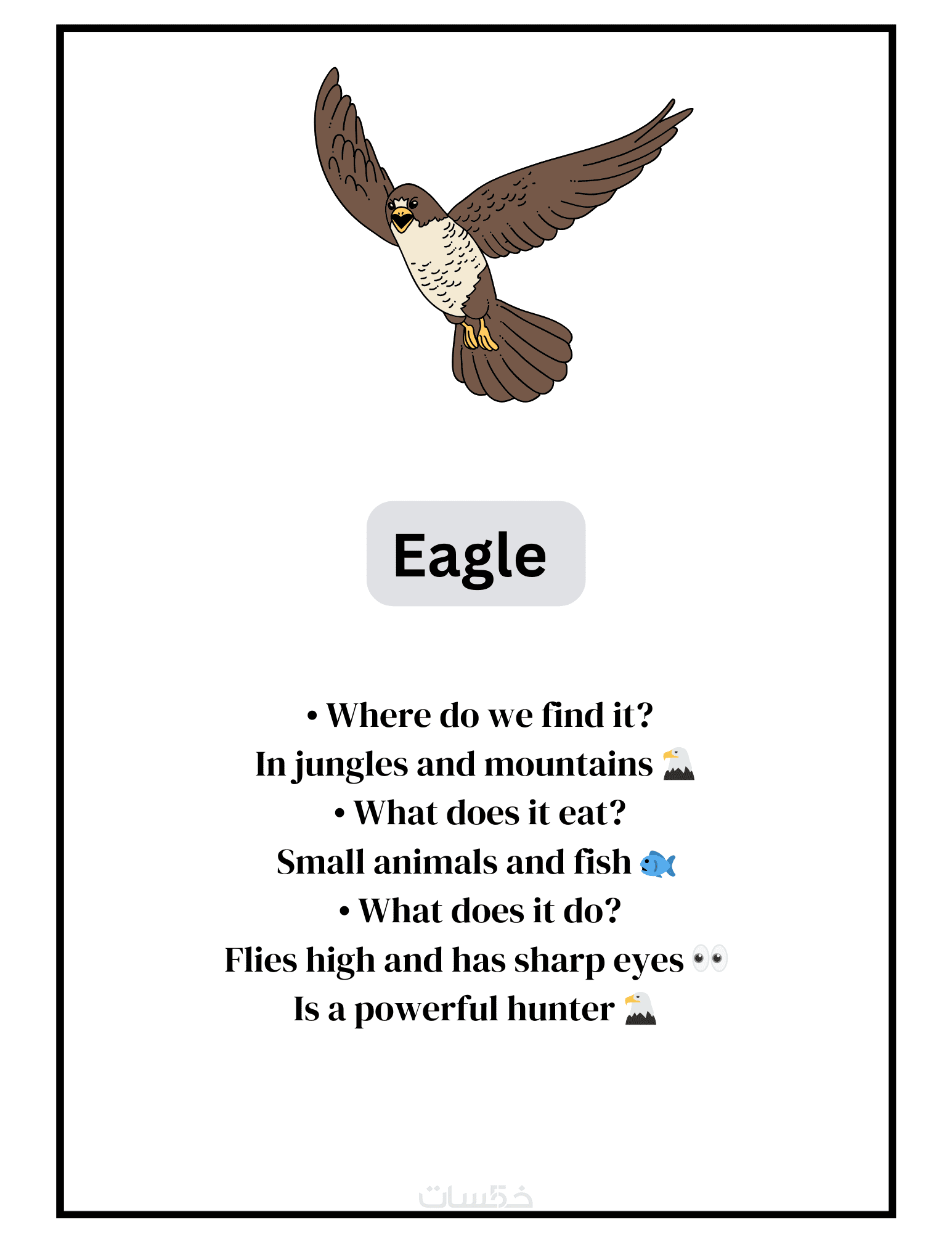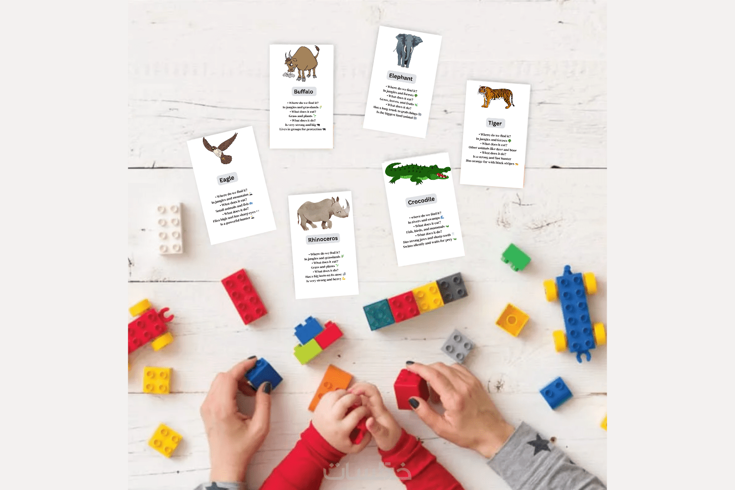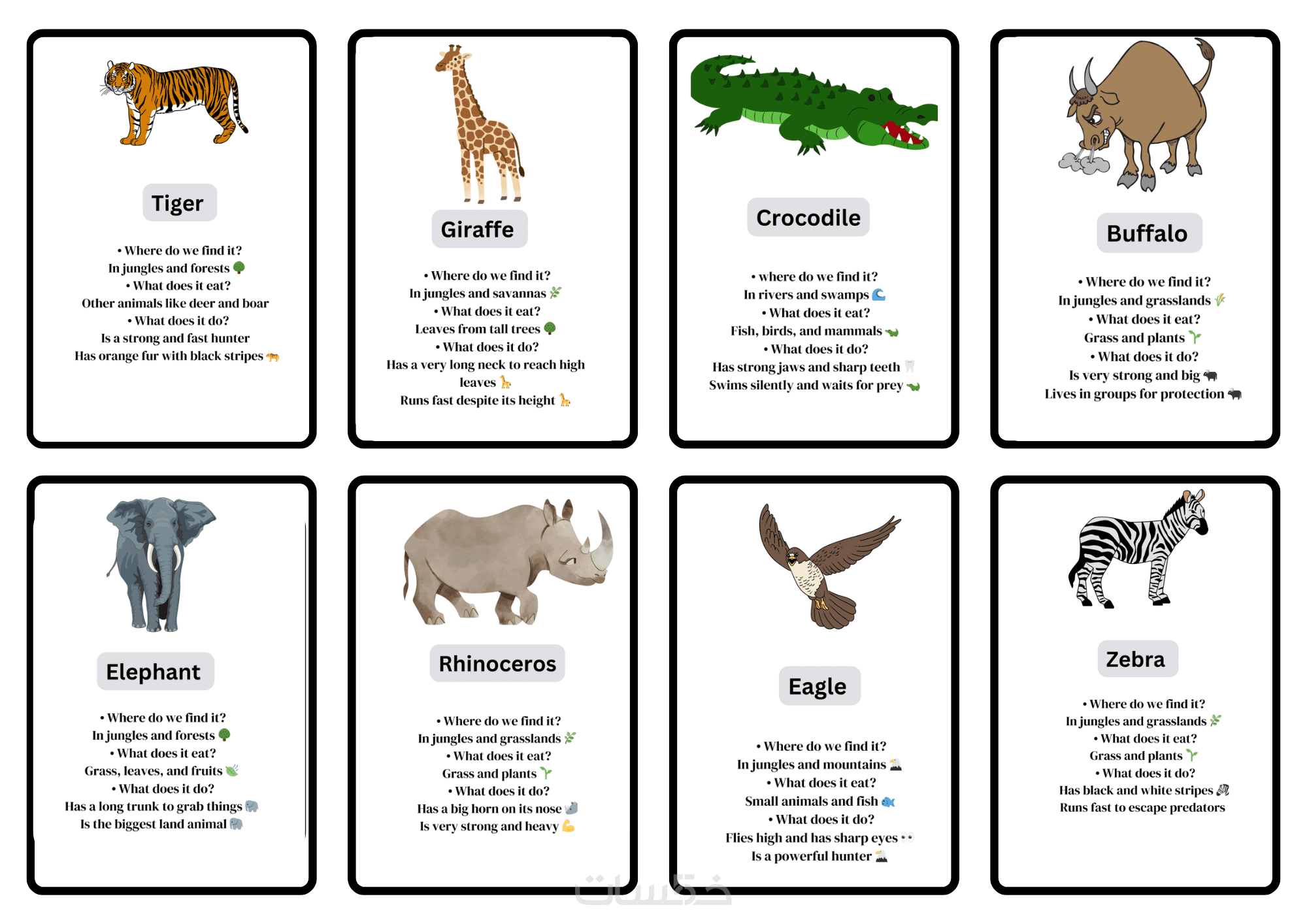 • تضمين معلومات ممتعة وتعليمية مبسطة عن كل عنصر أو حيوان