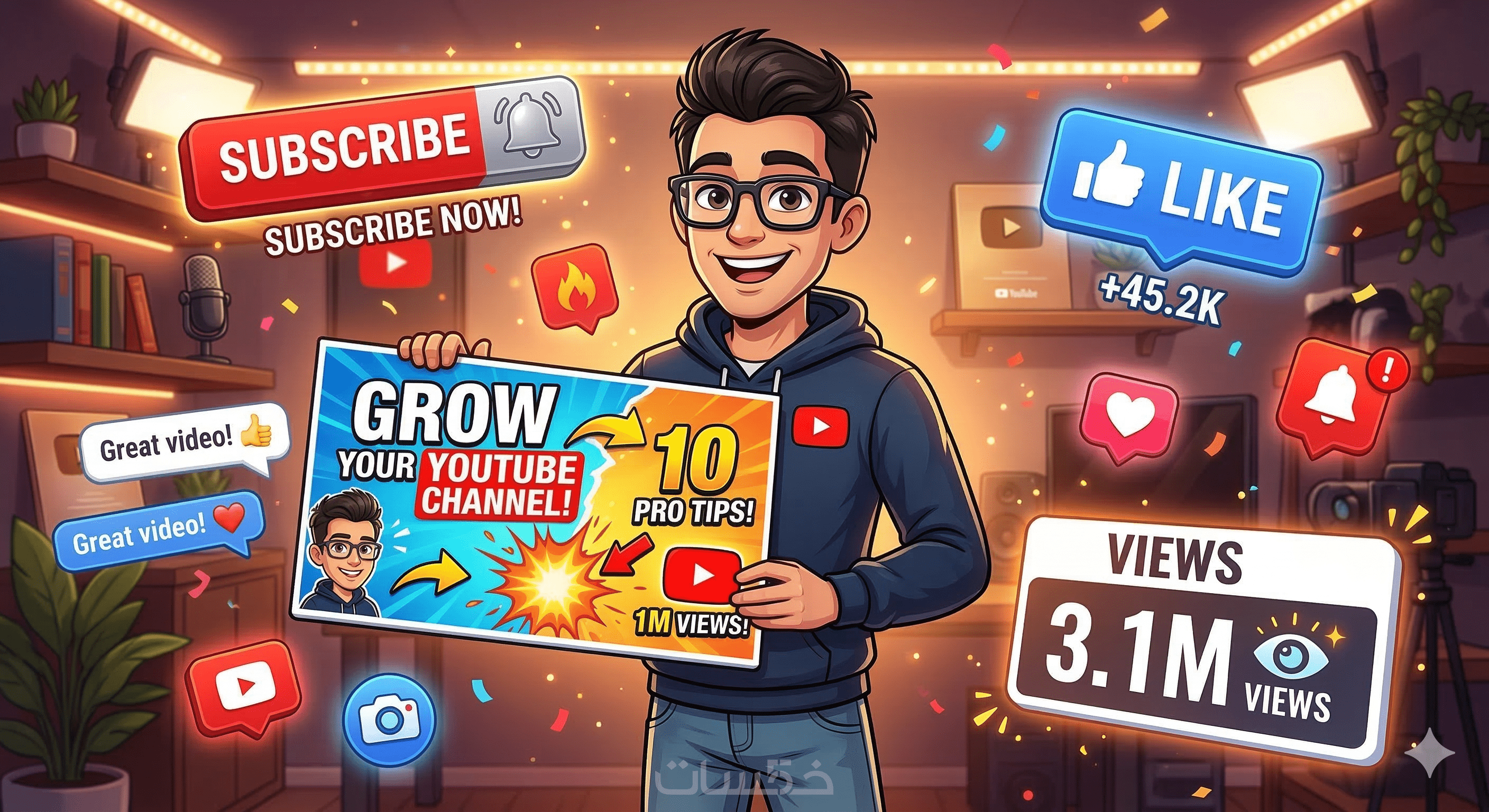 هل تعاني من قلة المشاهدات رغم جودة محتوى الفيديو الخاص بك؟ الحل يكمن في "الصورة المصغرة" (Thumbnail). سأقوم بتصميم صور مصغرة احترافية وجذابة جداً لقناتك باستخدام أحدث تقنيات الذكاء الاصطناعي (AI)