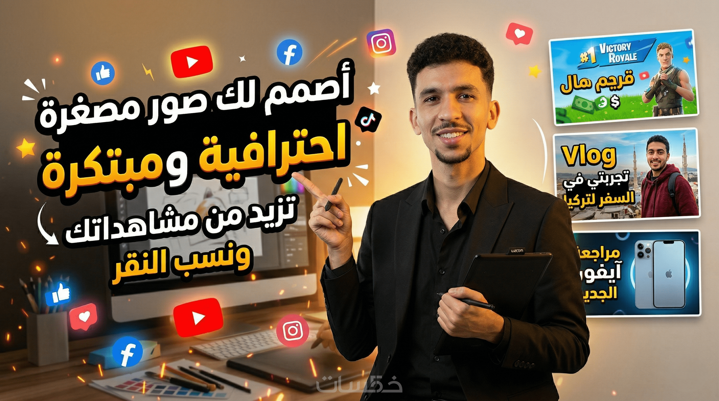 أنا هنا لأقدم لك خدمة تصميم صور مصغرة احترافية، مبتكرة، وجذابة تخطف الأنظار وتُجبر المشاهد على الضغط على فيديوهاتك.
