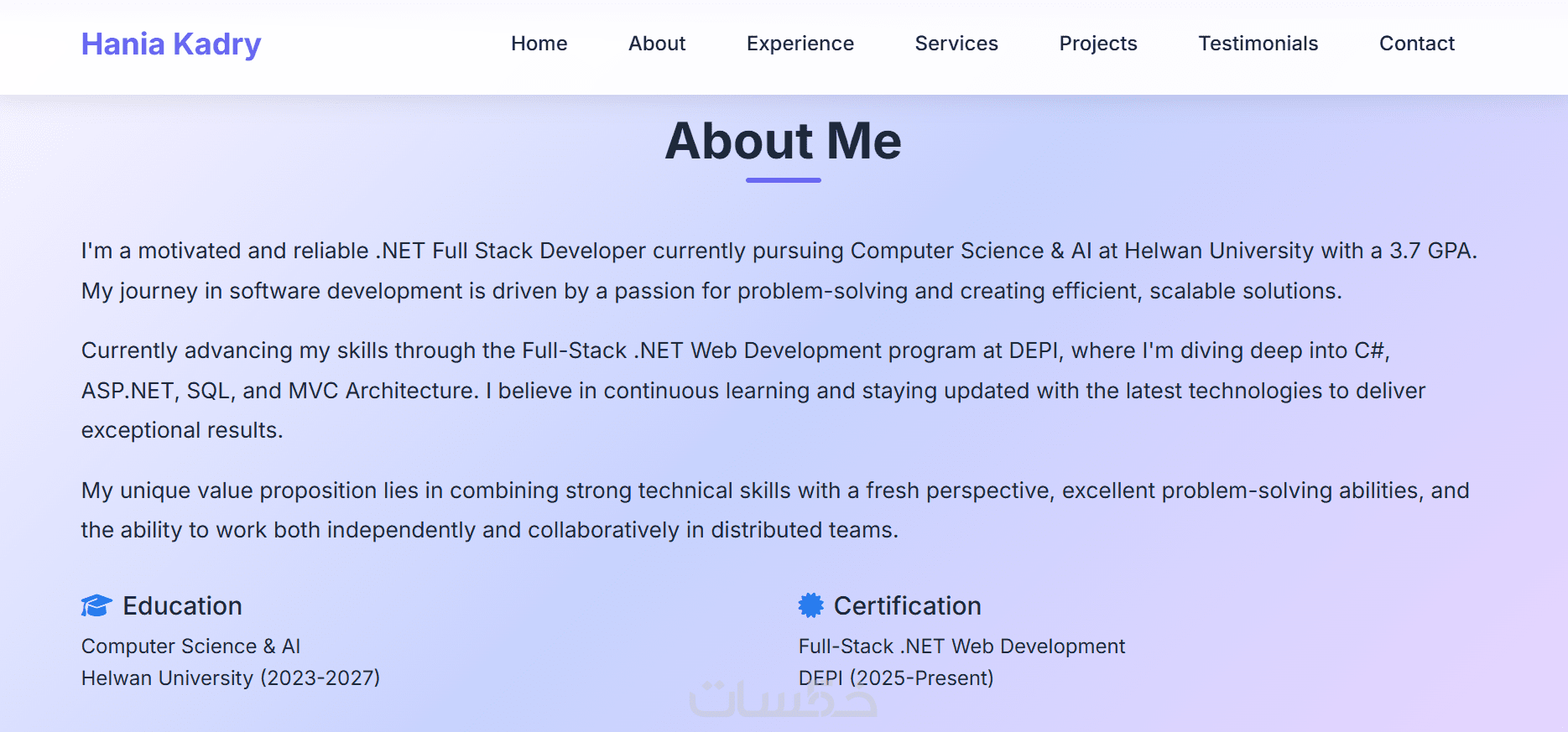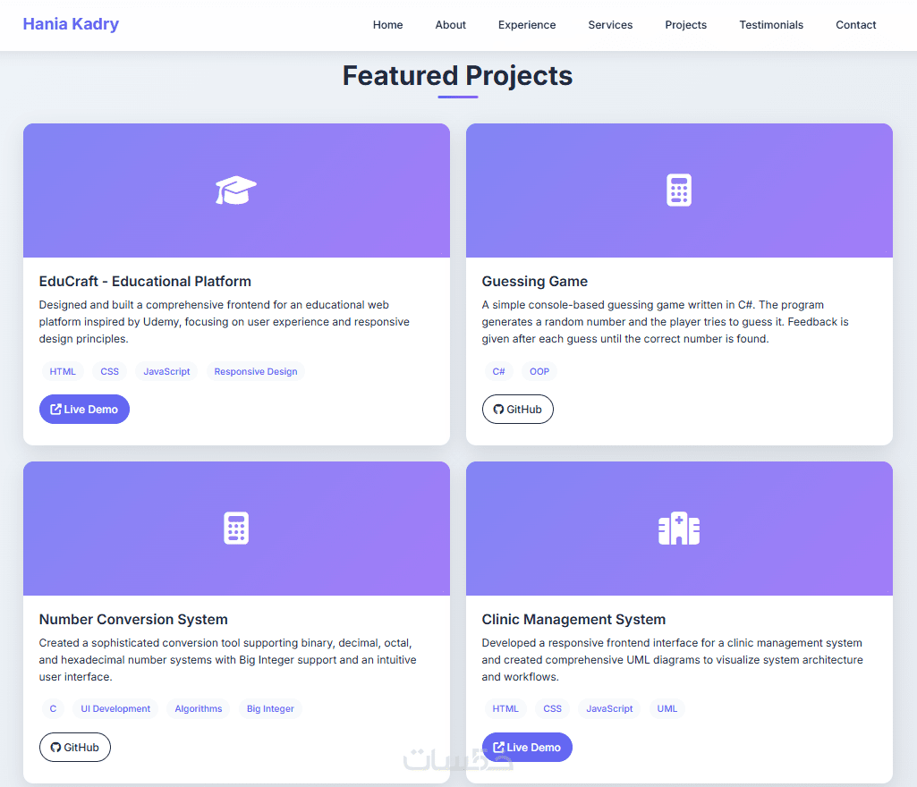 خبرة في تصميم المواقع الشخصية وصفحات الهبوط.