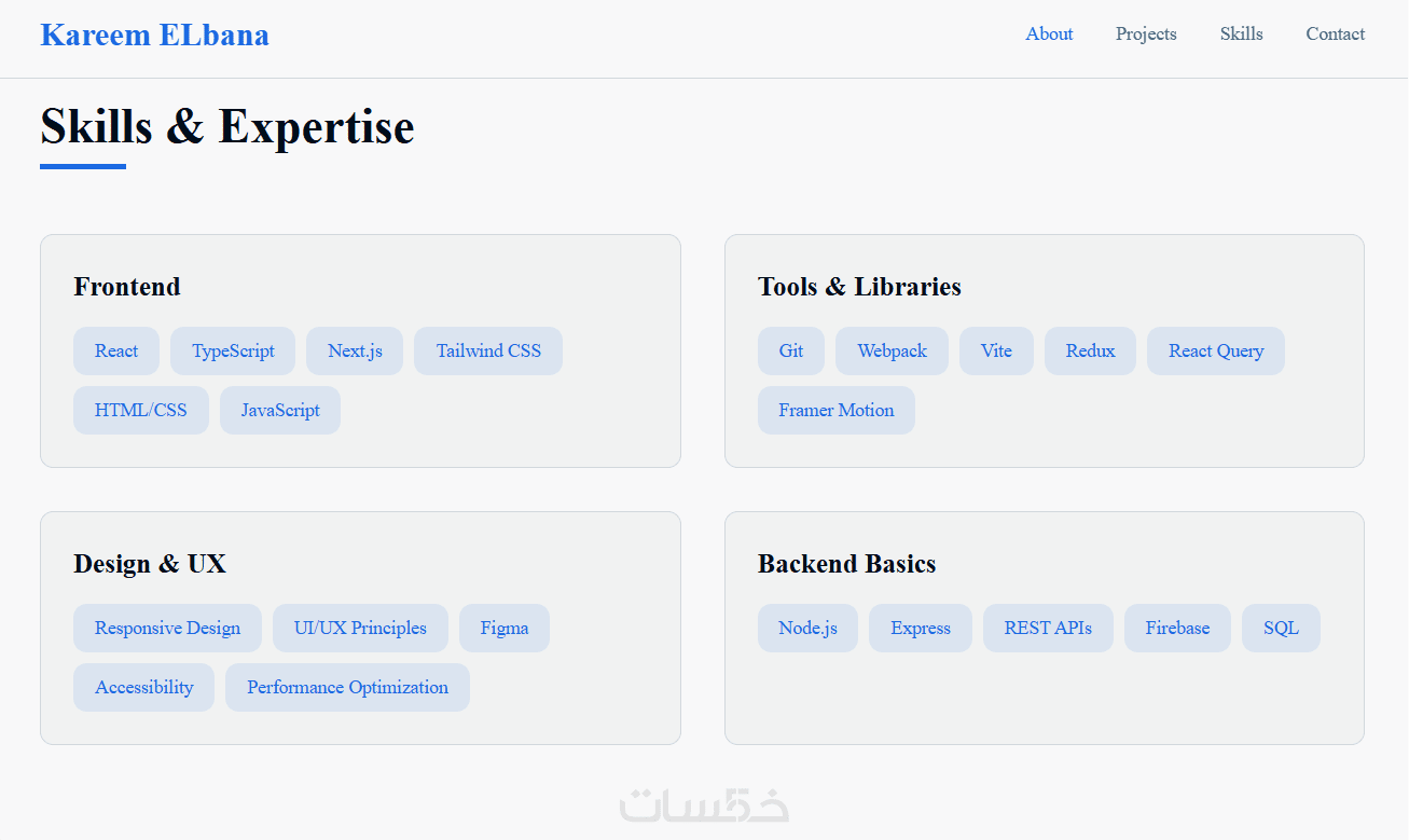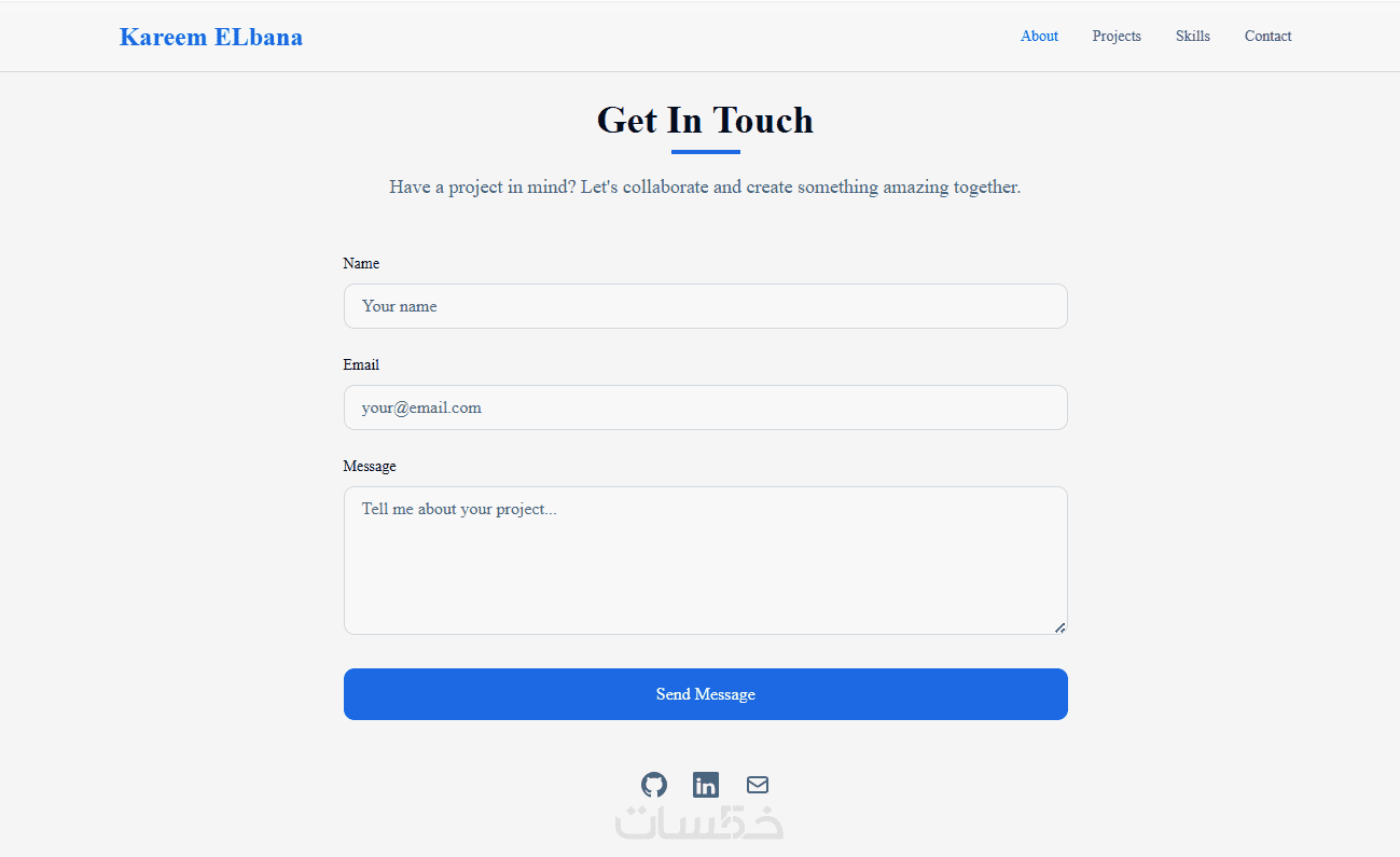 قسم المشاريع + قسم المهارات + نموذج تواصل عبر البريد.