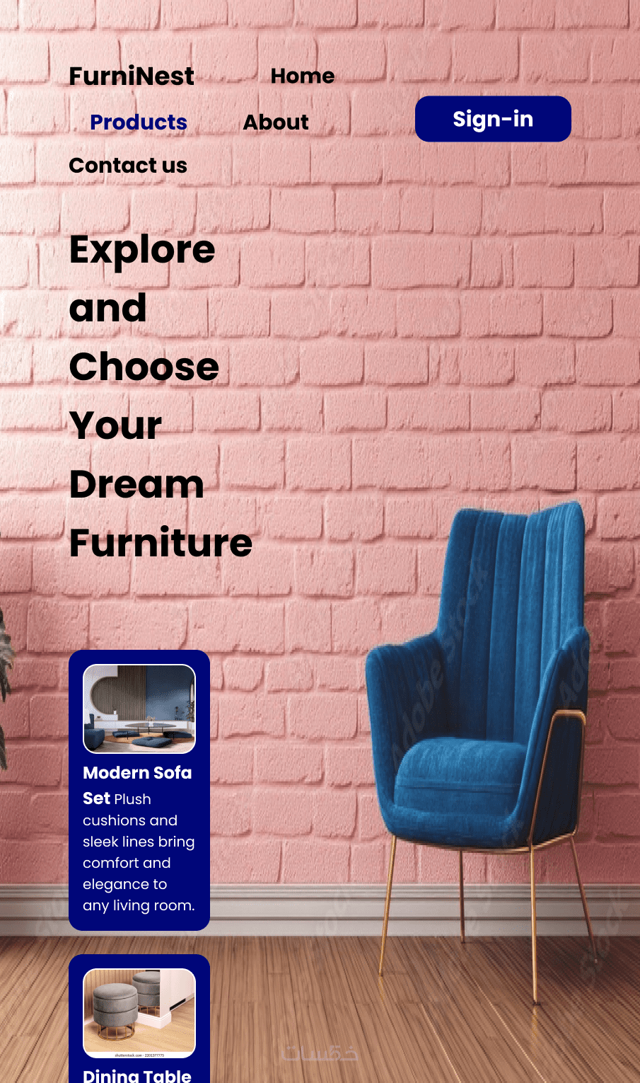 تصميم صفحة رئيسية كاملة لموقع أثاث (Homepage).