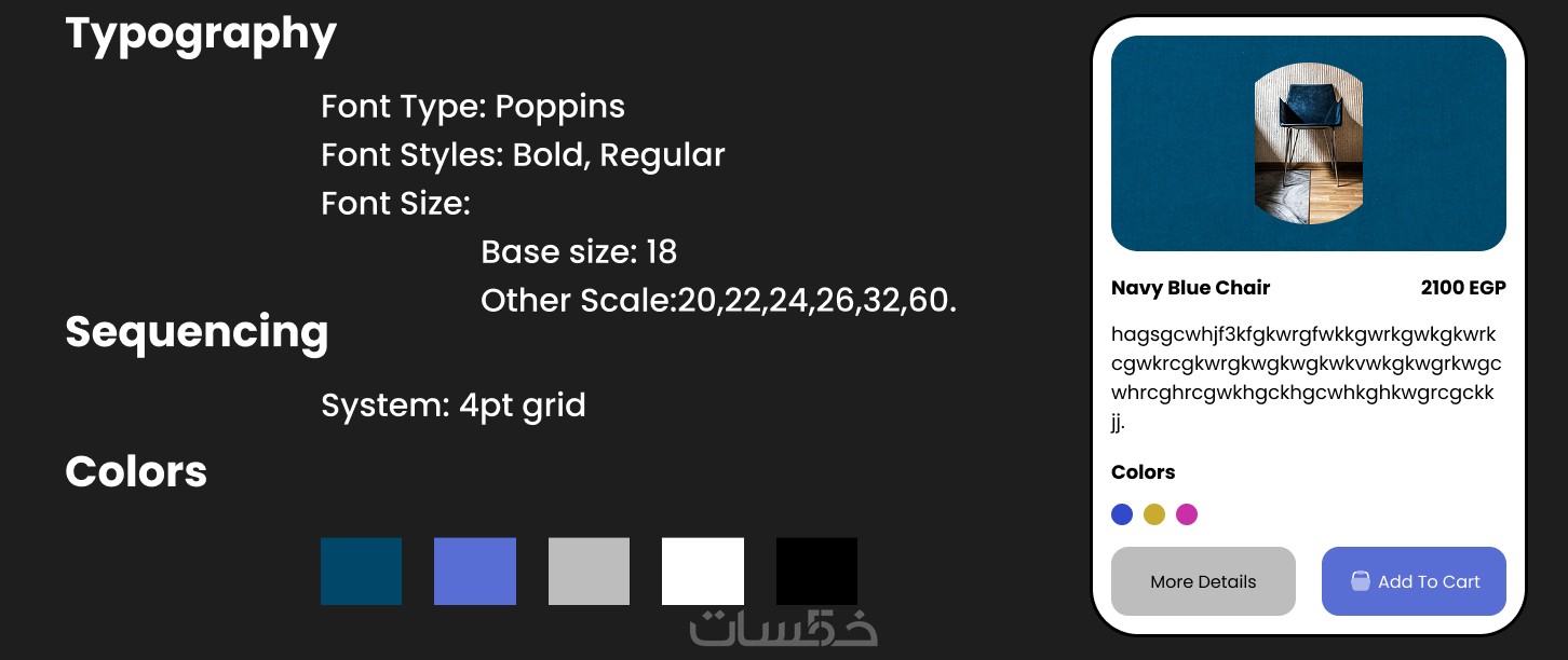 Style Guide يشمل الألوان والخطوط المستخدمة.