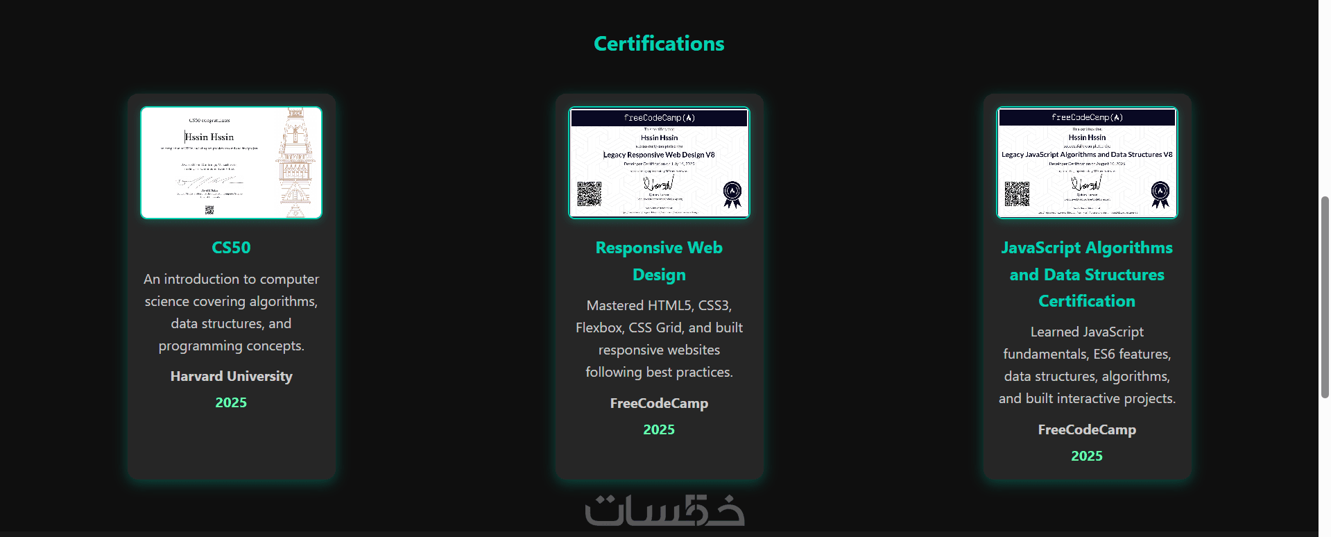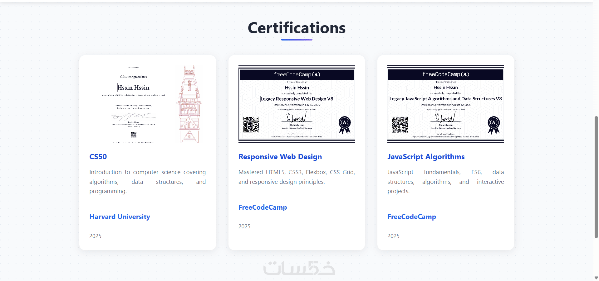 أقدّم لك خدمة تصميم صفحة بورتفوليو شخصية مناسبة للمطورين، المصممين، والطلبة، تساعدك على: