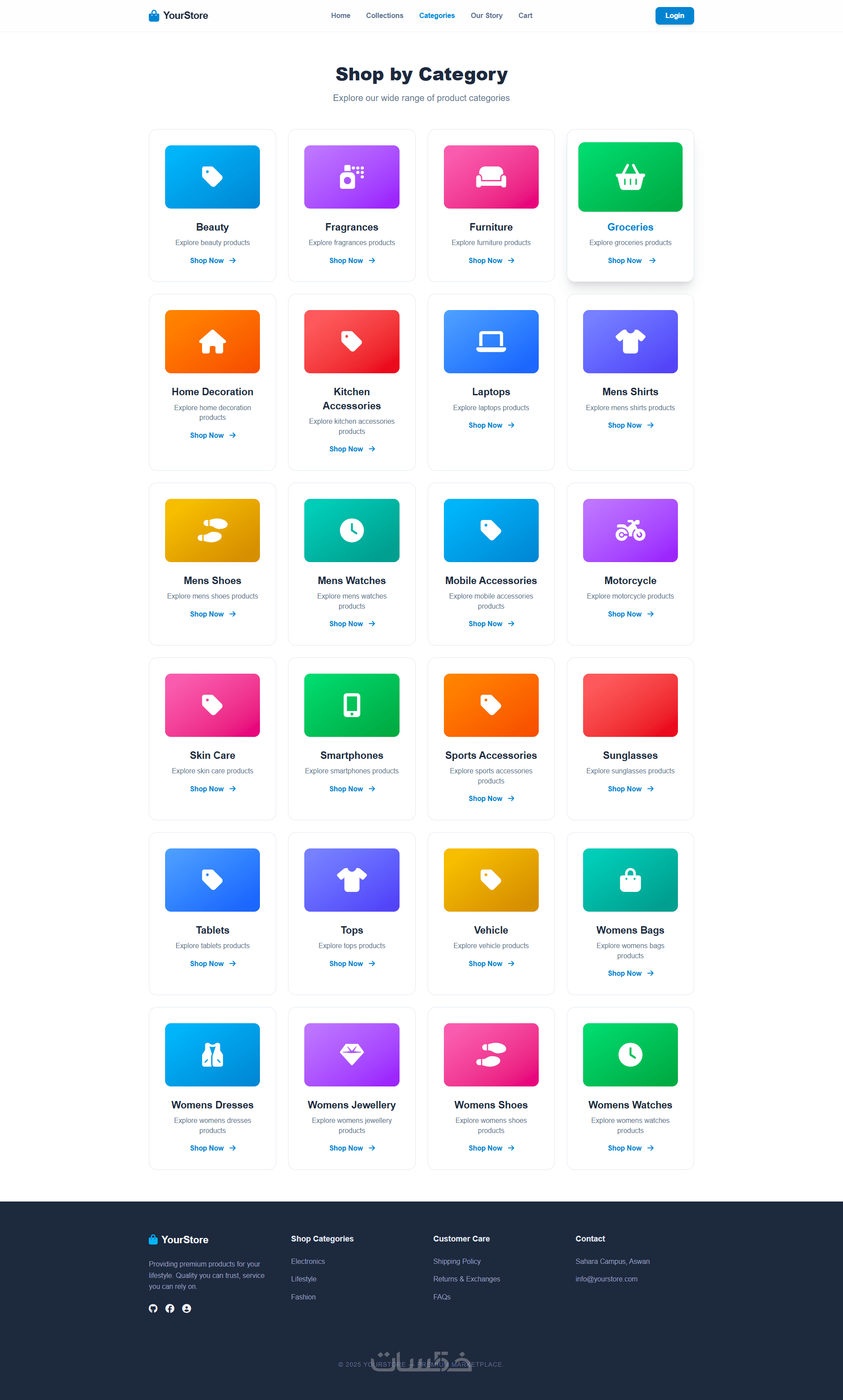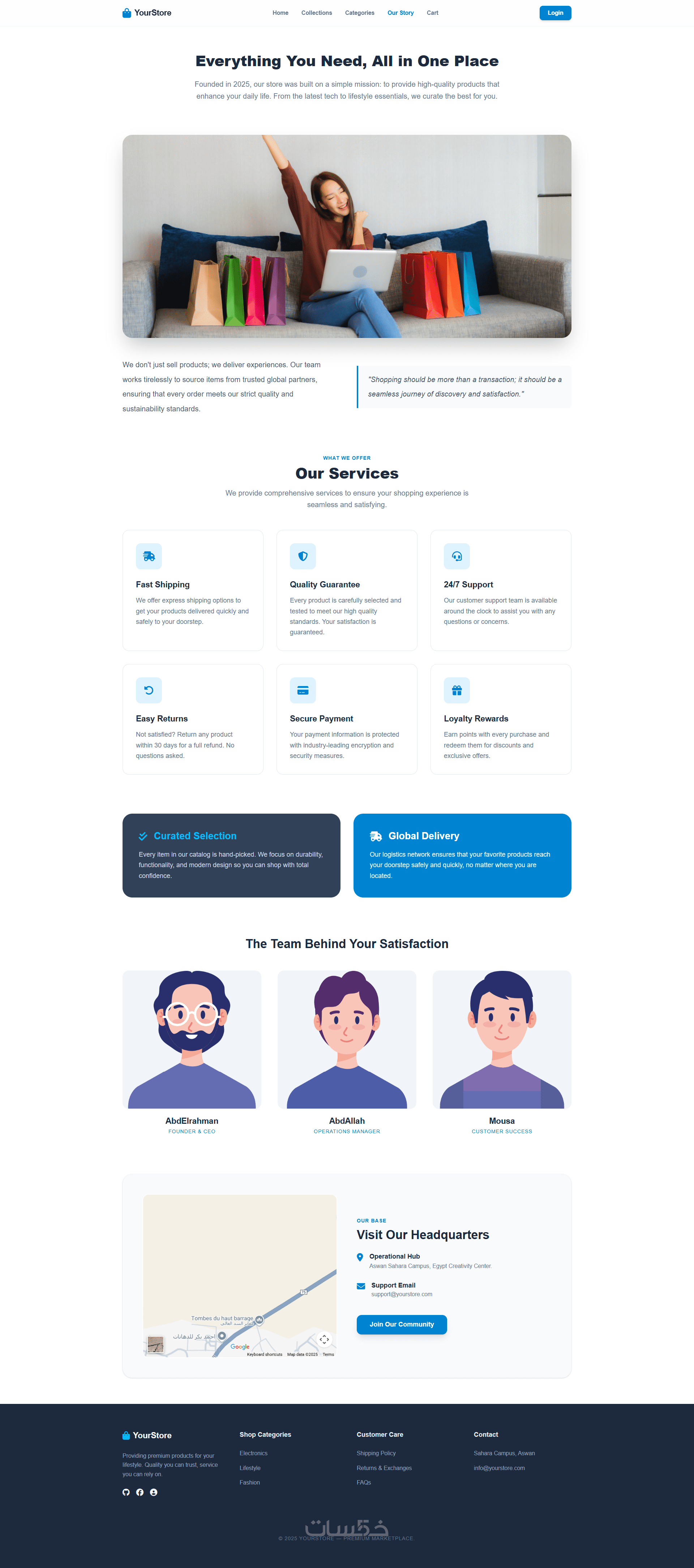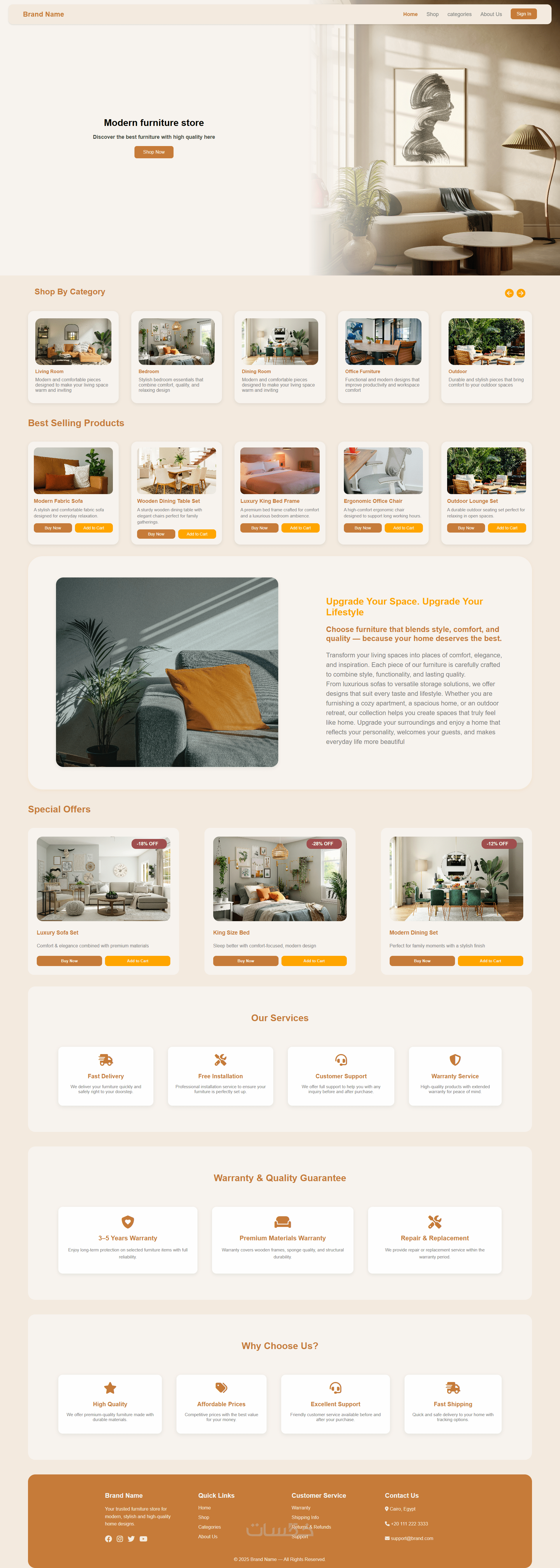 - صفحتان ويب (Navbar + 4 Sections + Footer لكل صفحة)