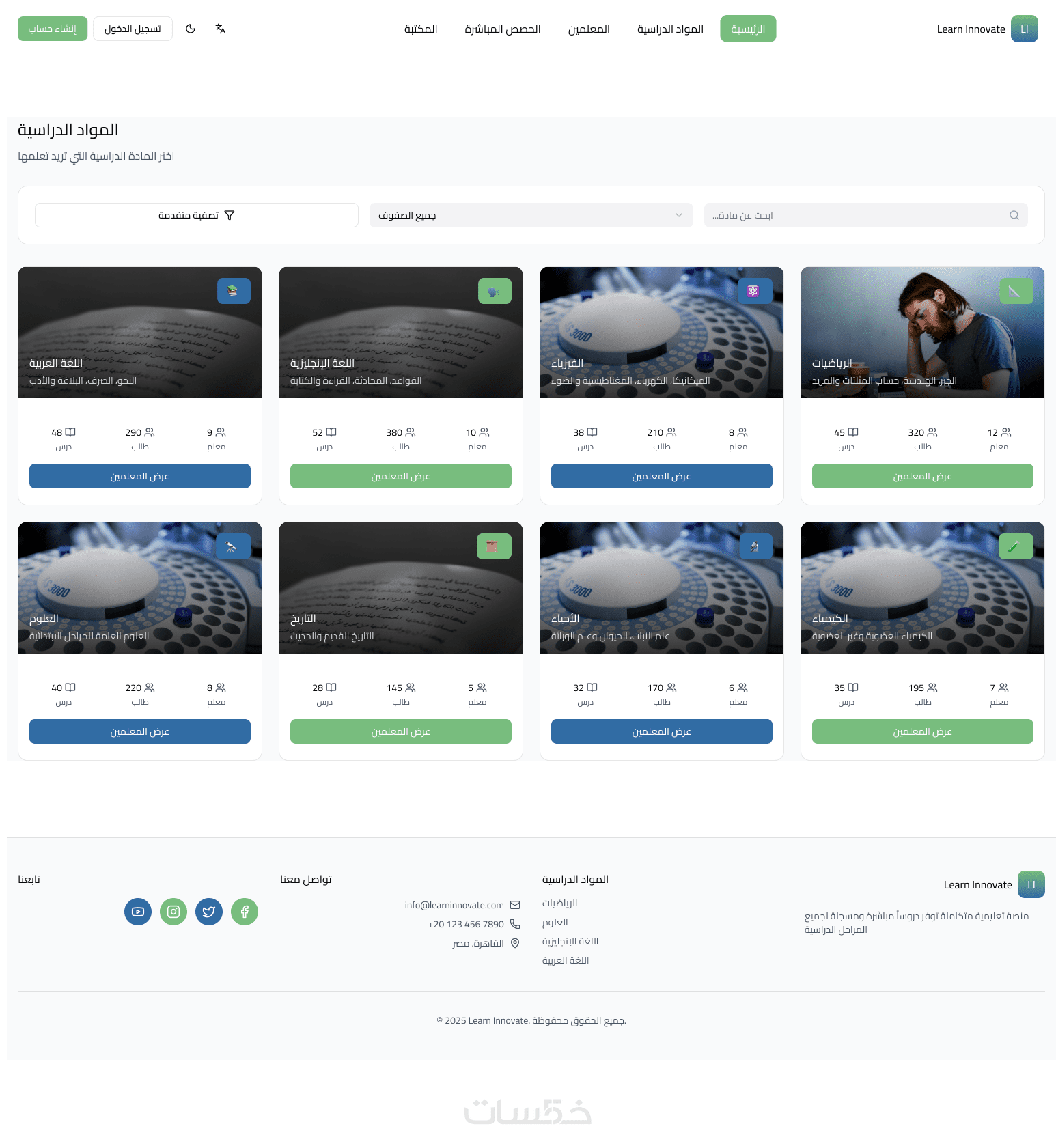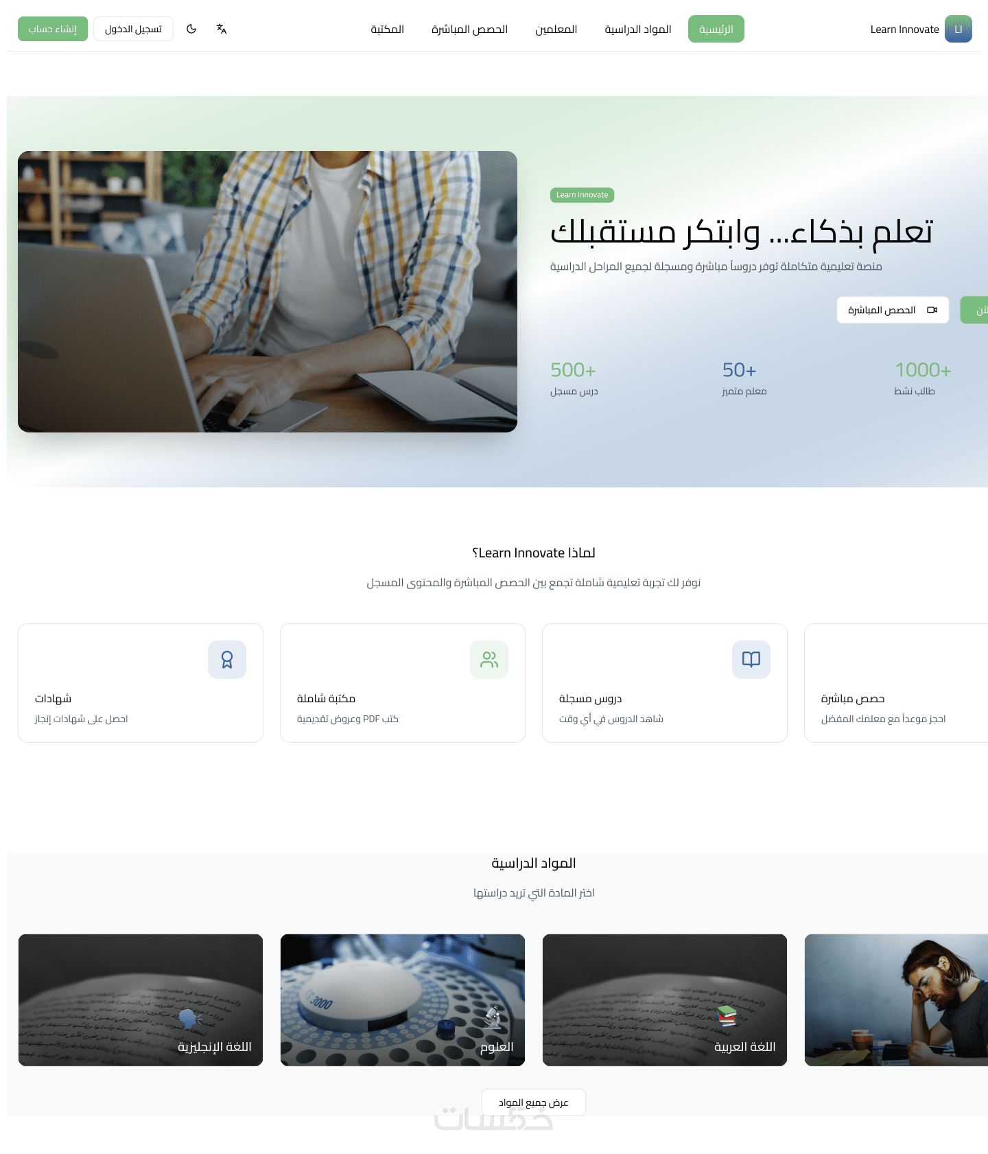 تصميم متكامل لصفحة رئيسية لموقع إلكتروني بنمط احترافي.