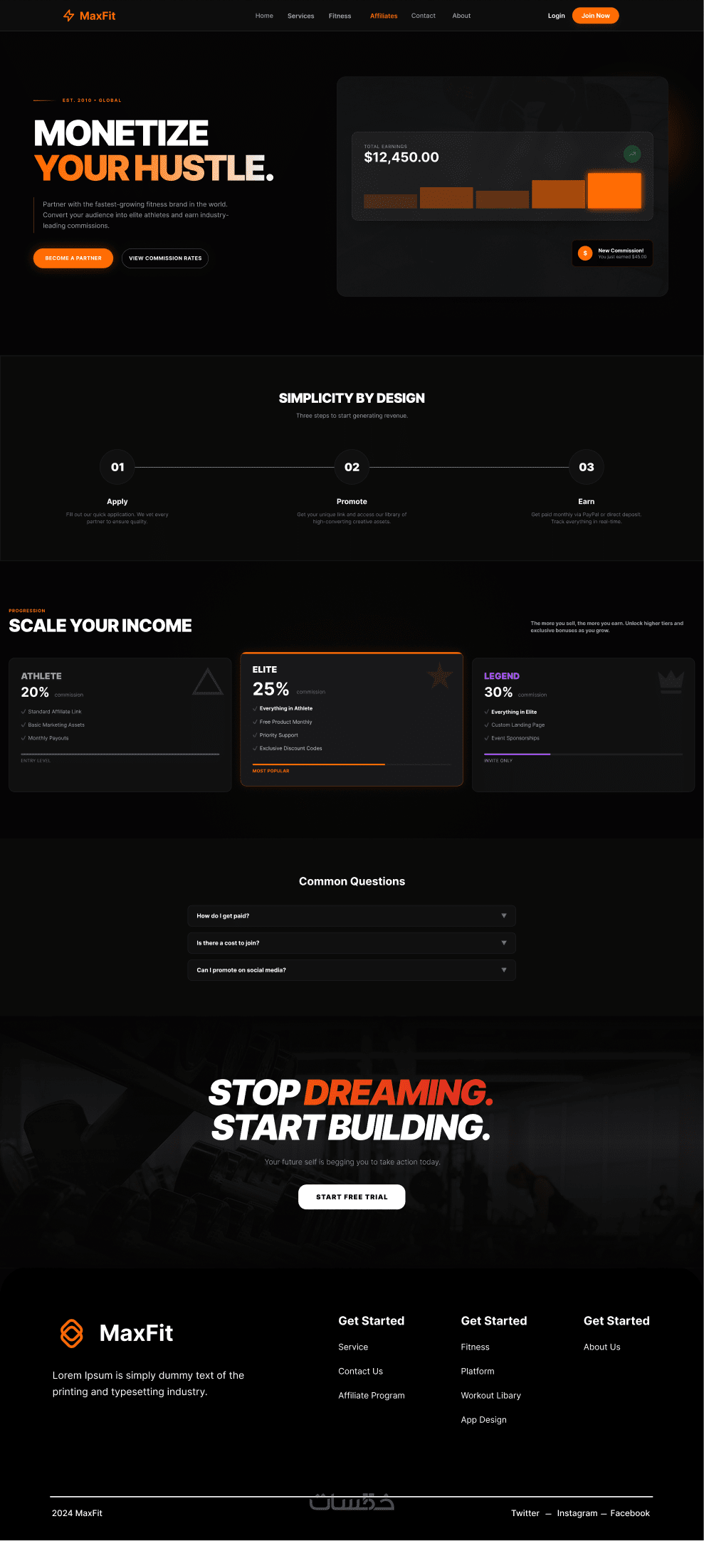 واجهة الاستقبال: فيديو أو صورة حماسية + عنوان جذاب + زر واضح "اشترك الآن".