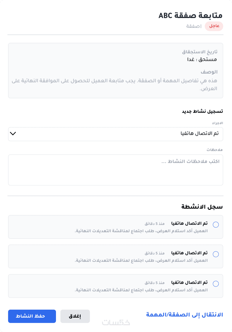 ملف العميل: أرشيف كامل يحتوي على العقود وسجل الاجتماعات السابق.