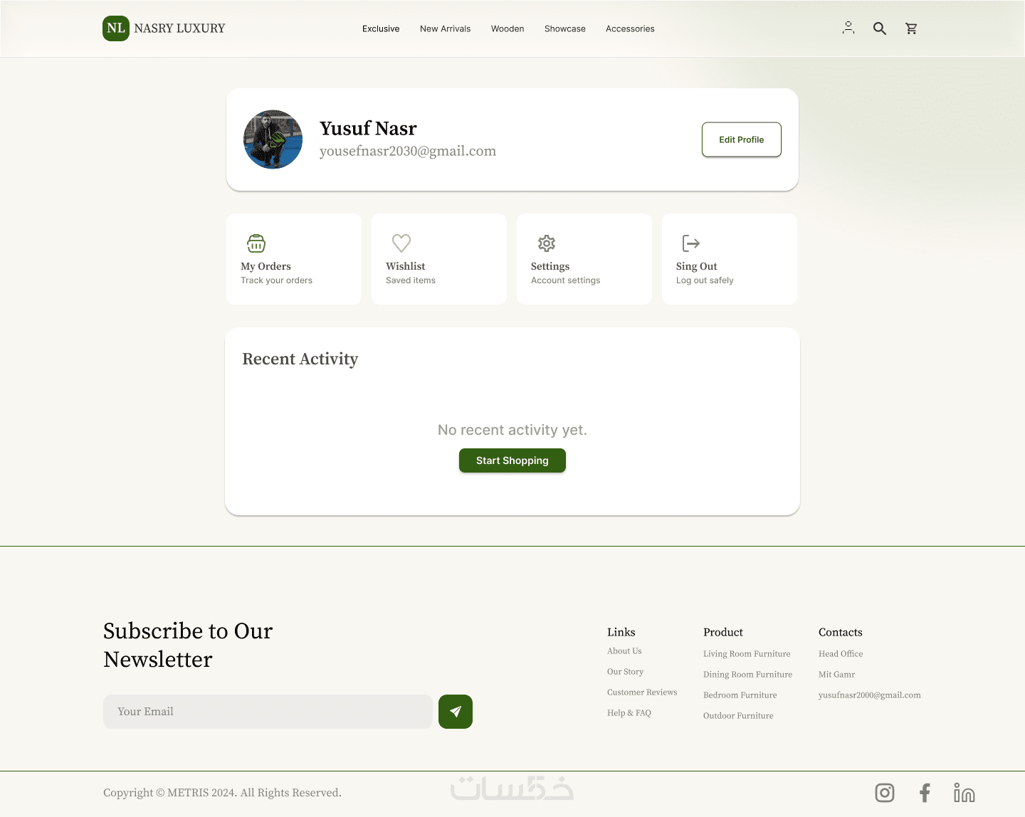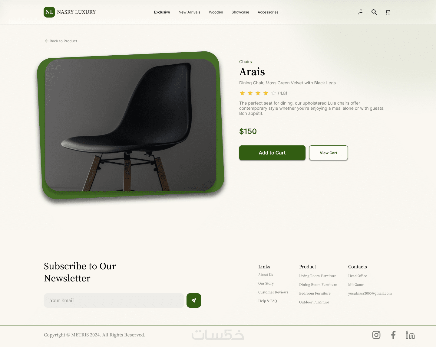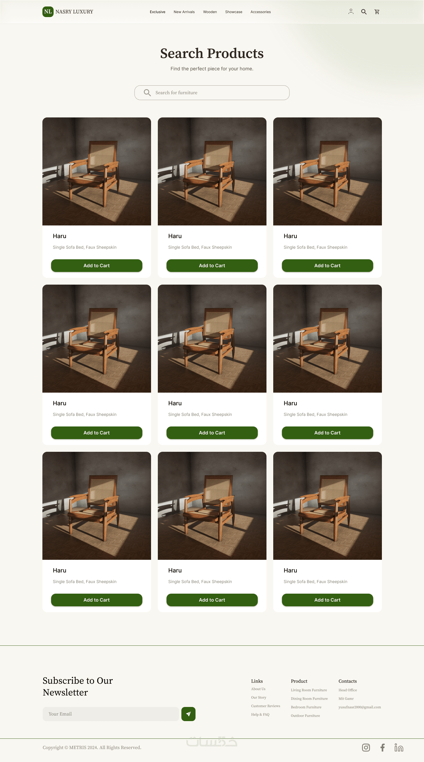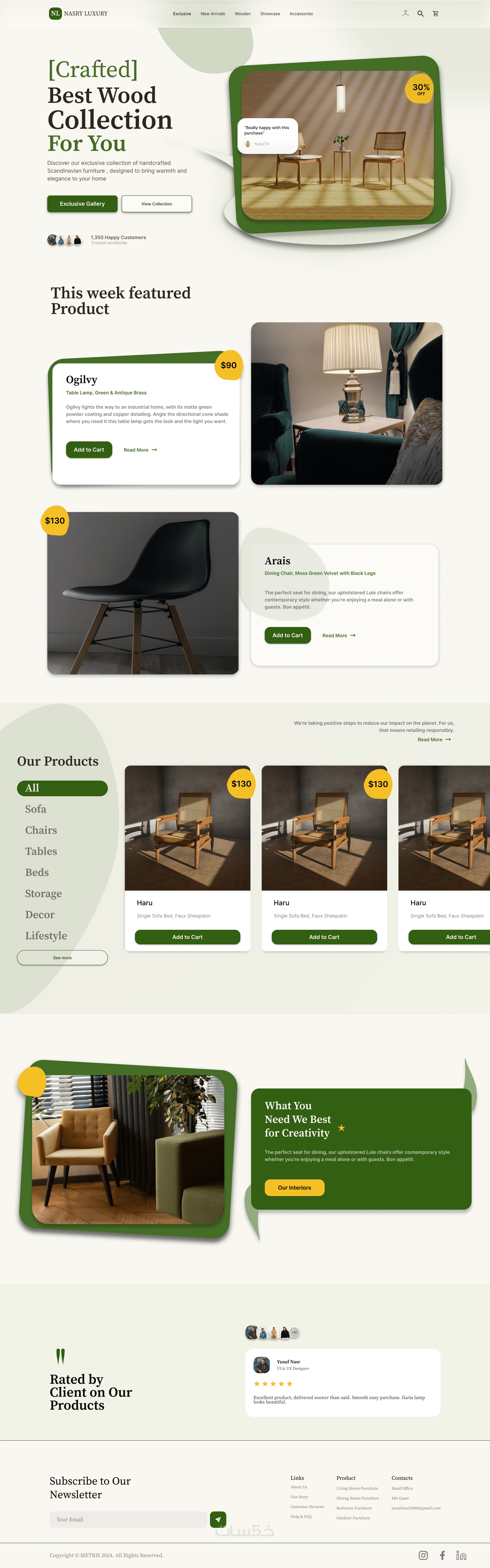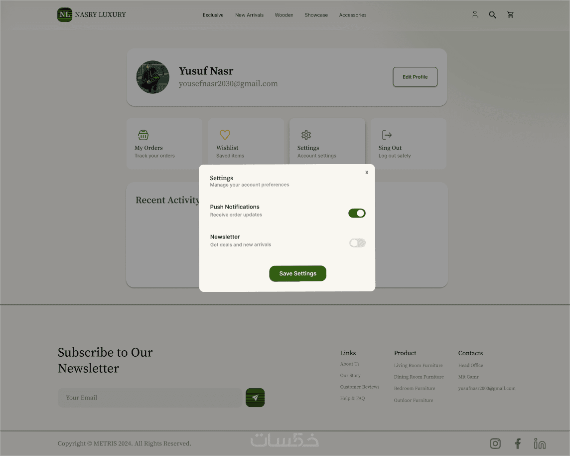 مشروع تصميم ويب سايت تجاري متخصص في عرض وبيع الأثاث المنزلي العصري. يهدف الموقع إلى تقديم تجربة استخدام سهلة ومريحة تساعد المستخدم على تصفح المنتجات، مقارنة الخيارات، واتخاذ قرار الشراء بثقة. تم التركيز على تنظيم المحتوى، وضوح الأقسام، وإبراز جودة المنتجات من خلال تصميم عصري وبسيط.