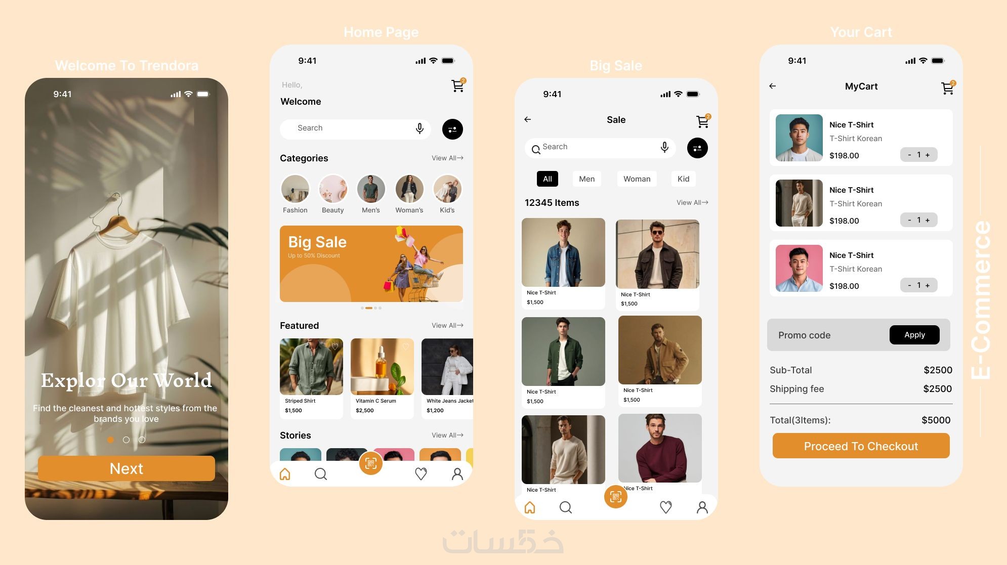 تصميم 3 واجهات(شاشات) اضافيه: اضافه 3 شاشات اضافيه لتطبيقك او موقعك بنفس الجودة.