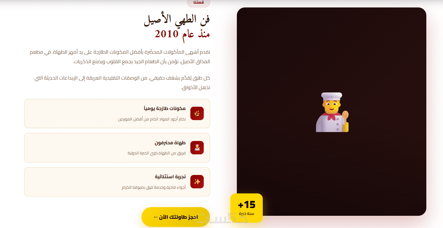 2. قسم عن المطعم — صورة الشيف + نبذة تعريفية + أبرز مميزات المطعم