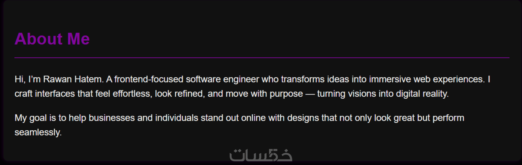 - قسم الى About وهذا القسم هو التعريف عن العميل صاحب الموقع الشخصي.
