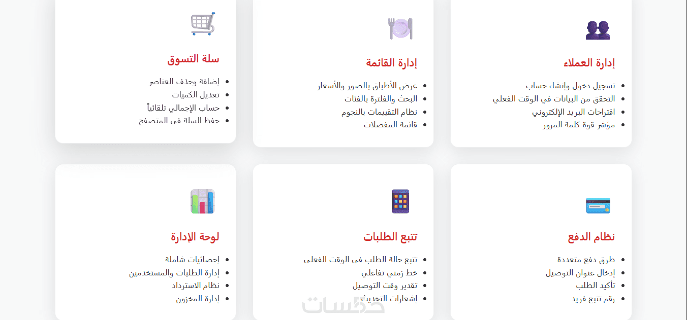 إمكانية إضافة سلة مشتريات ونظام طلب أونلاين