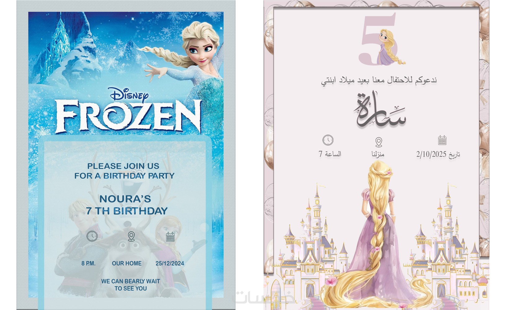 ويمكنك أن تطلب التصميم الذي ترغب به من حيث القالب والحجم واللون ونوع الخط والموسيقى وغيرها، كما تستطيع طلب ملفات التصميم كاملة من المصمم لتتمكن من طباعتها لاحقًا على نماذج ورقية.