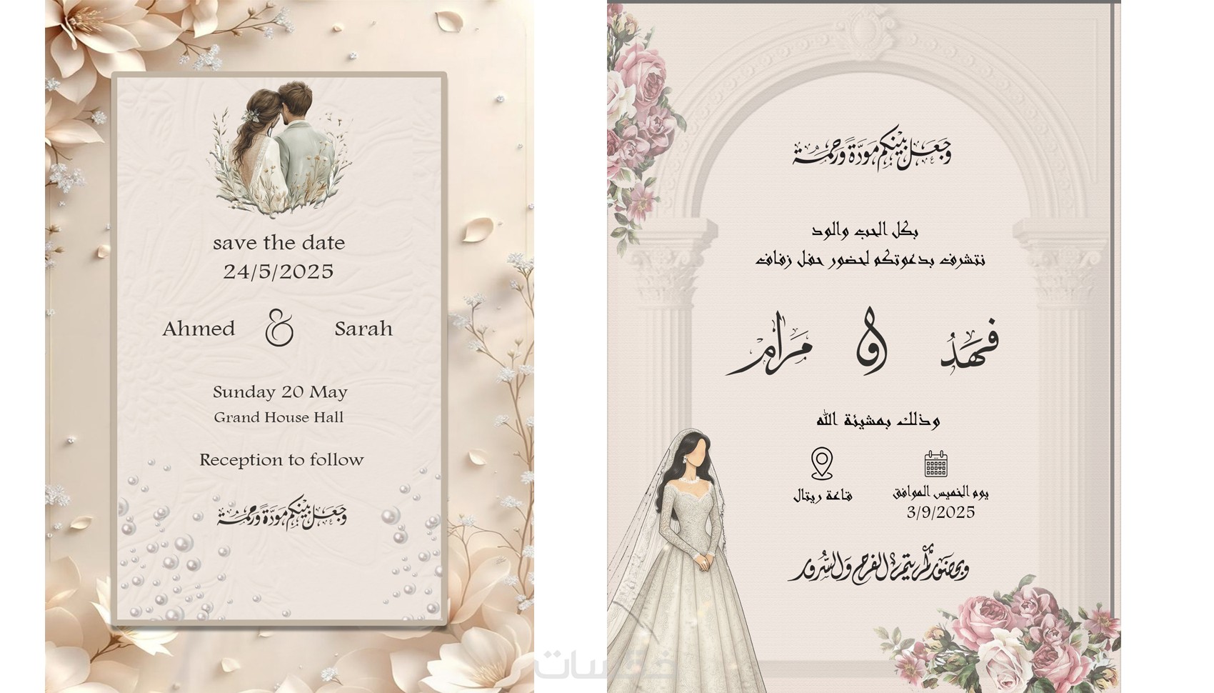 - تعطي الانطباع الأول عن زفافك لدى الآخرين، فصممها بجودة تجعلك فخورًا بإرسالها ومشاركتها.
