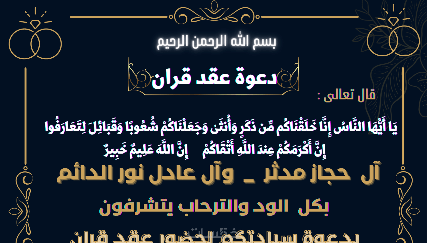 بصفتي مصمم جرافيك مستقل واخصص وقتي الكامل في تقديم هذة الخدمة سأكون سعيدا لمساعدتك في تحقيق اهدافك تحت تصرفك ساقوم بتصميم دعوة زفاف واحد بسعر الخدمة