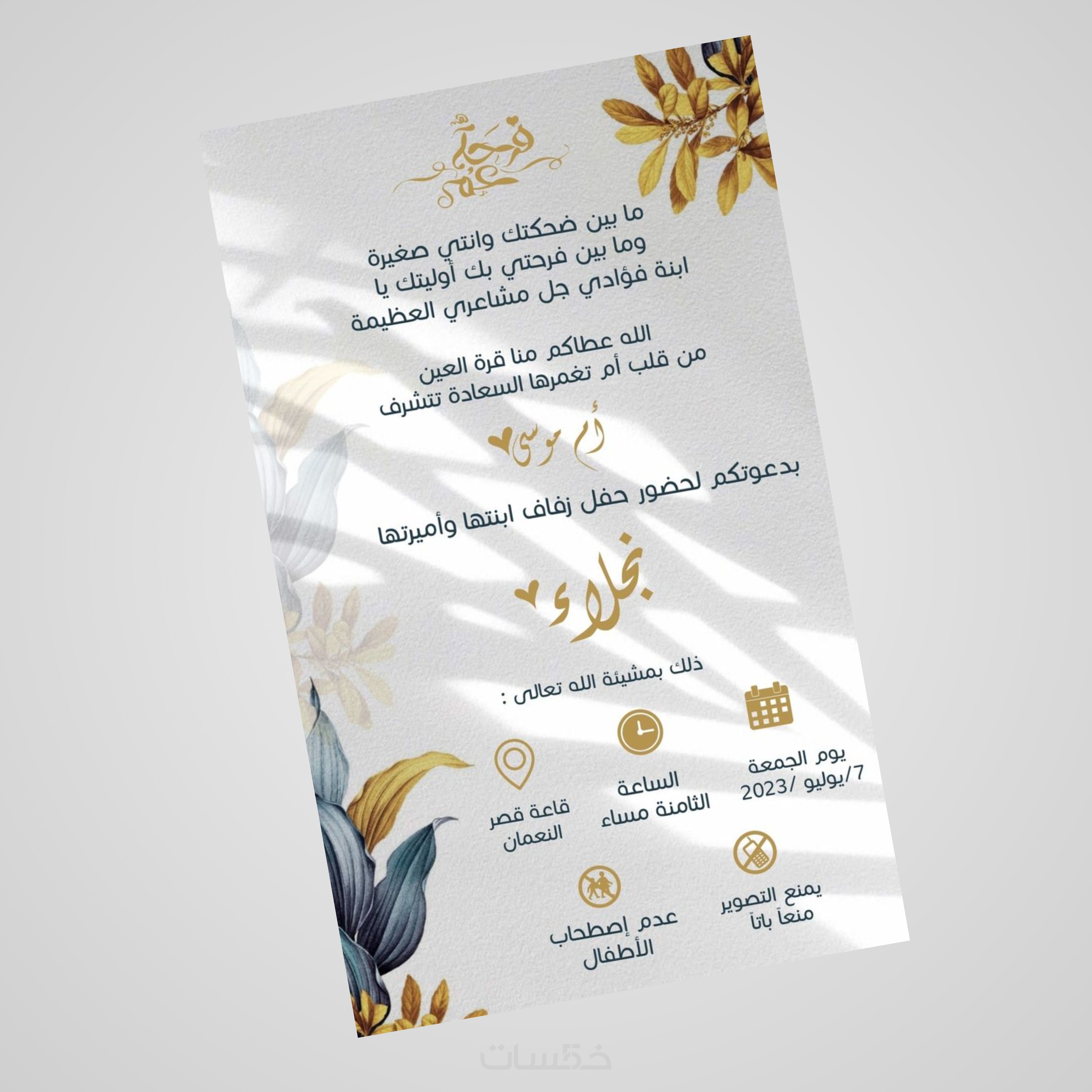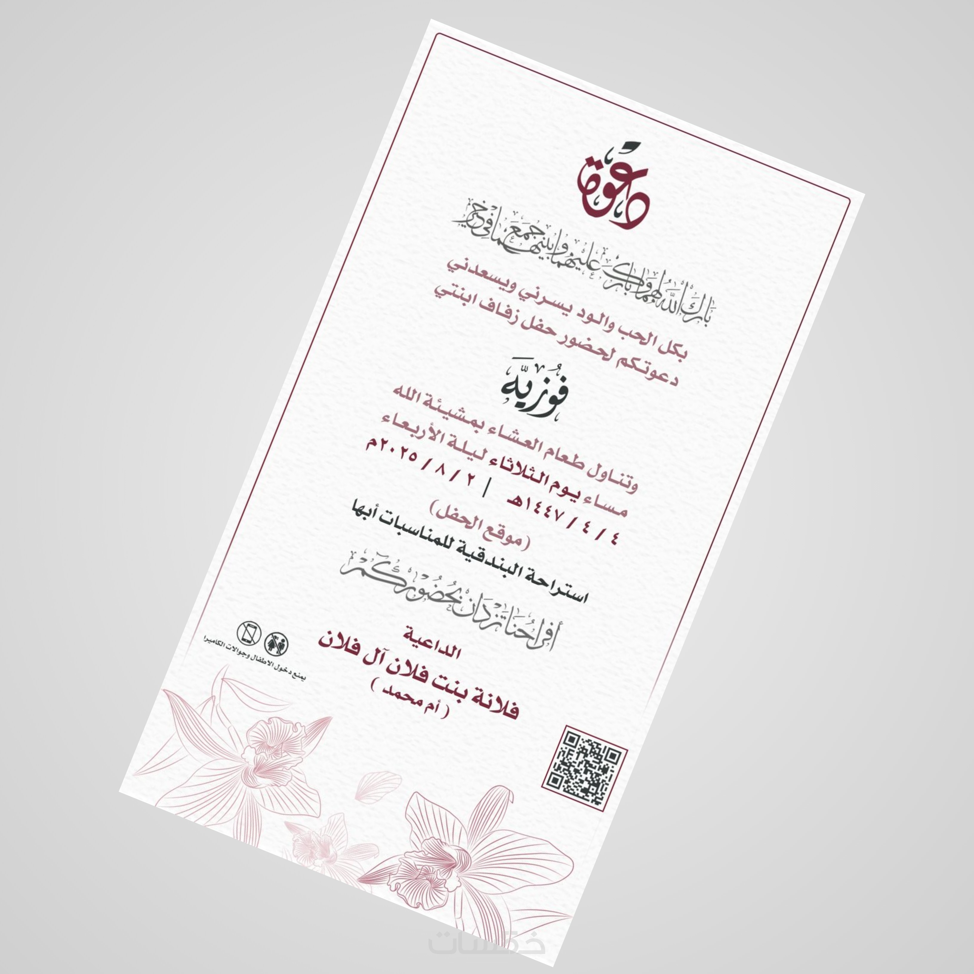 هل تبحثين عن دعوة زفاف تعبّر عن ذوقك الراقي وتُخلّد لحظتكِ المميزة بأسلوب أنثوي ناعم؟