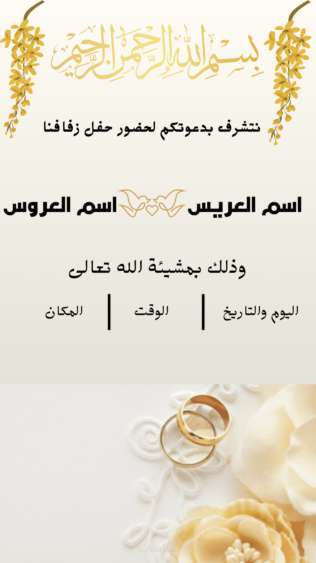 - دعوة زفاف رقمية بتصميم راقي وجذاب بصيغة JPG أو PNG (حسب اختيارك)