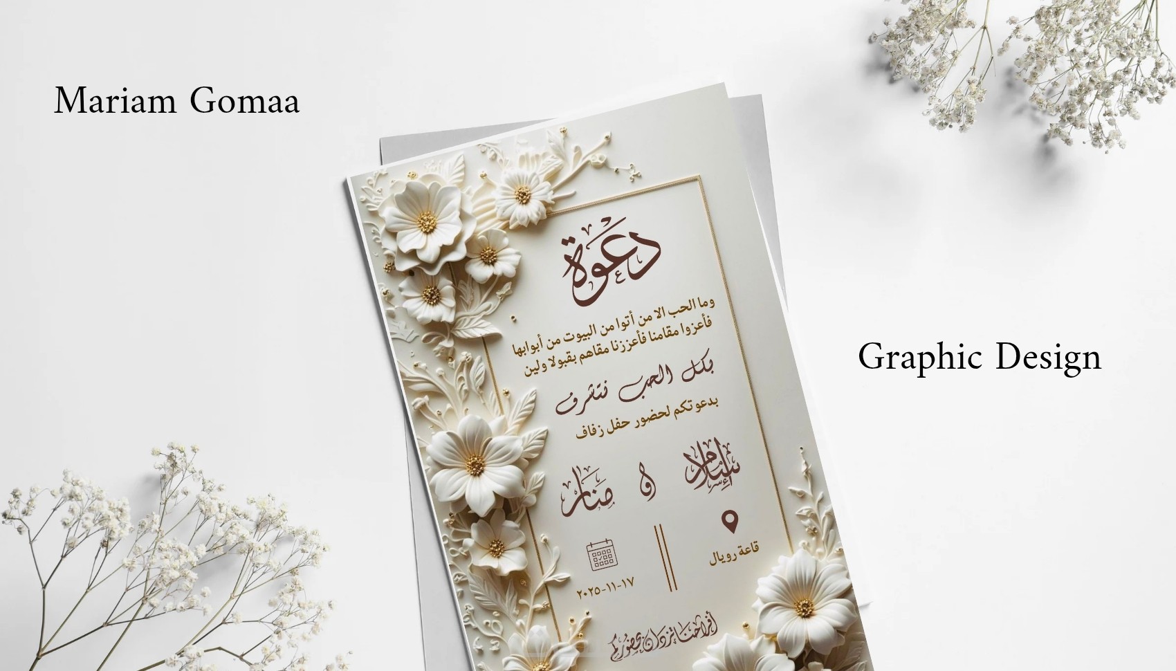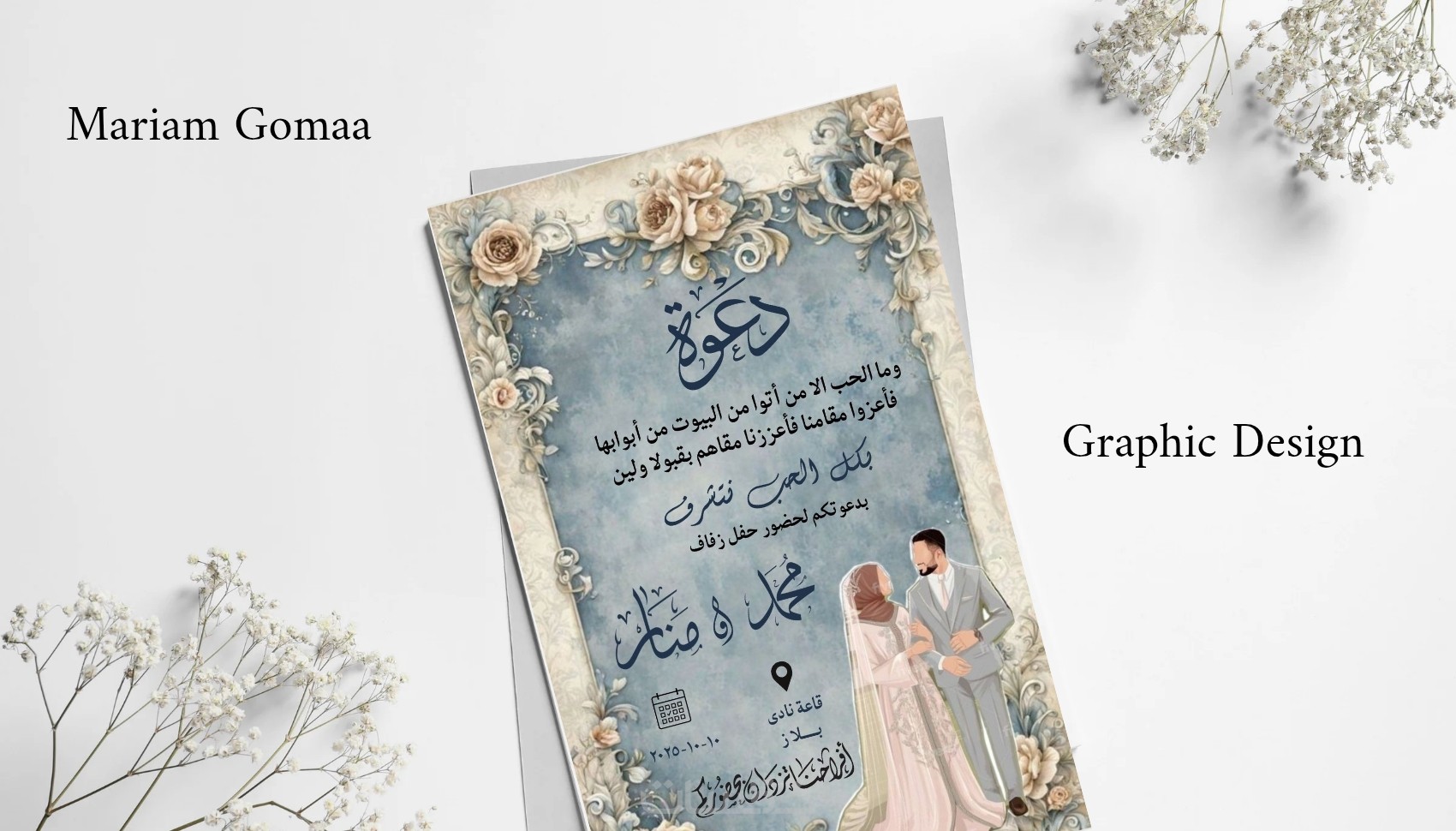 أصمّم لك دعوة زفاف أنيقة ومميزة تعكس ذوقك وتناسب أجواء مناسبتك السعيدة، مع تصميم فريد وجودة عالية للطباعة أو الإرسال الرقمي، وإمكانية التعديل حتى الرضا التام.يتم استلام الكارت صورة jpg,png,pdf