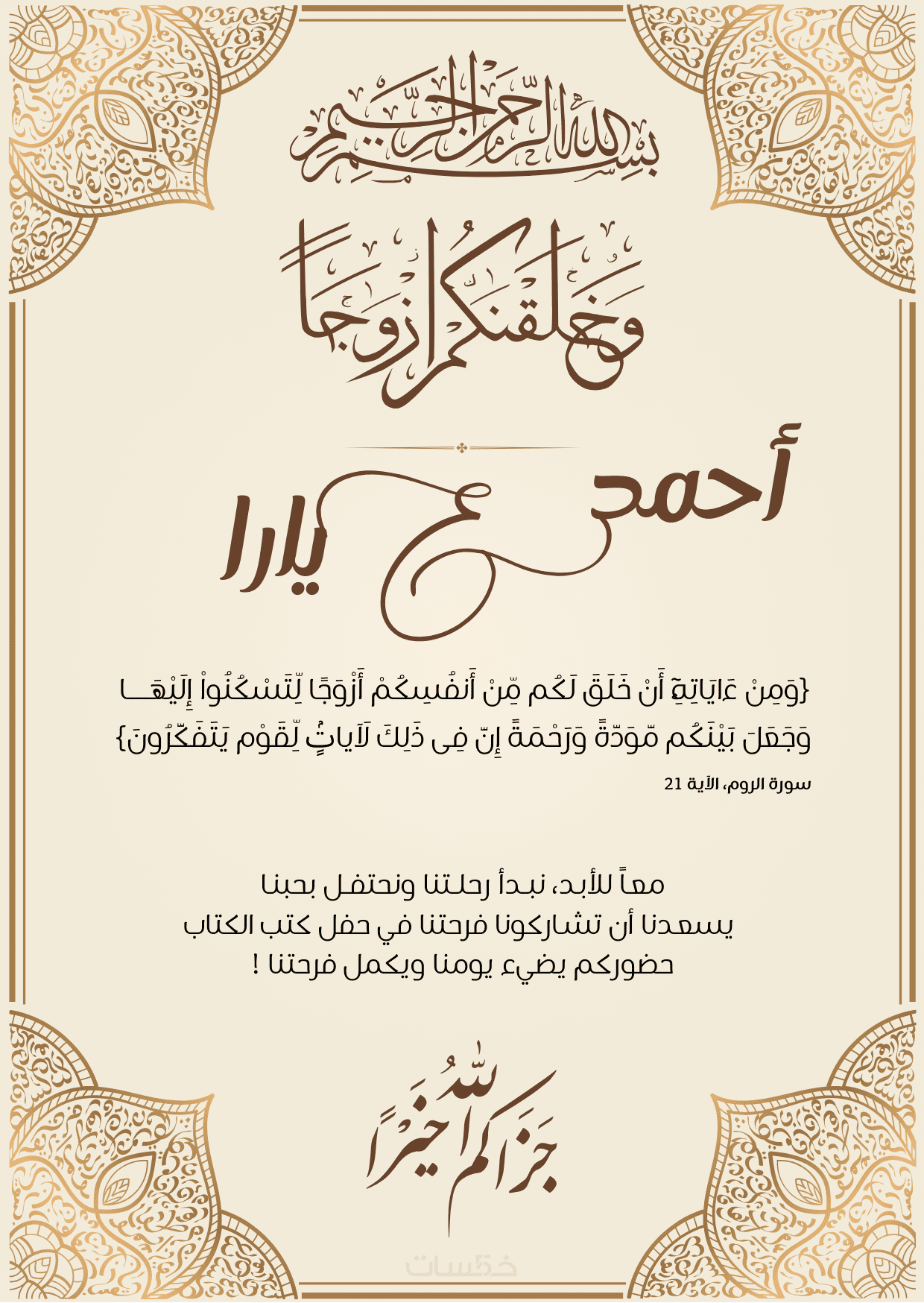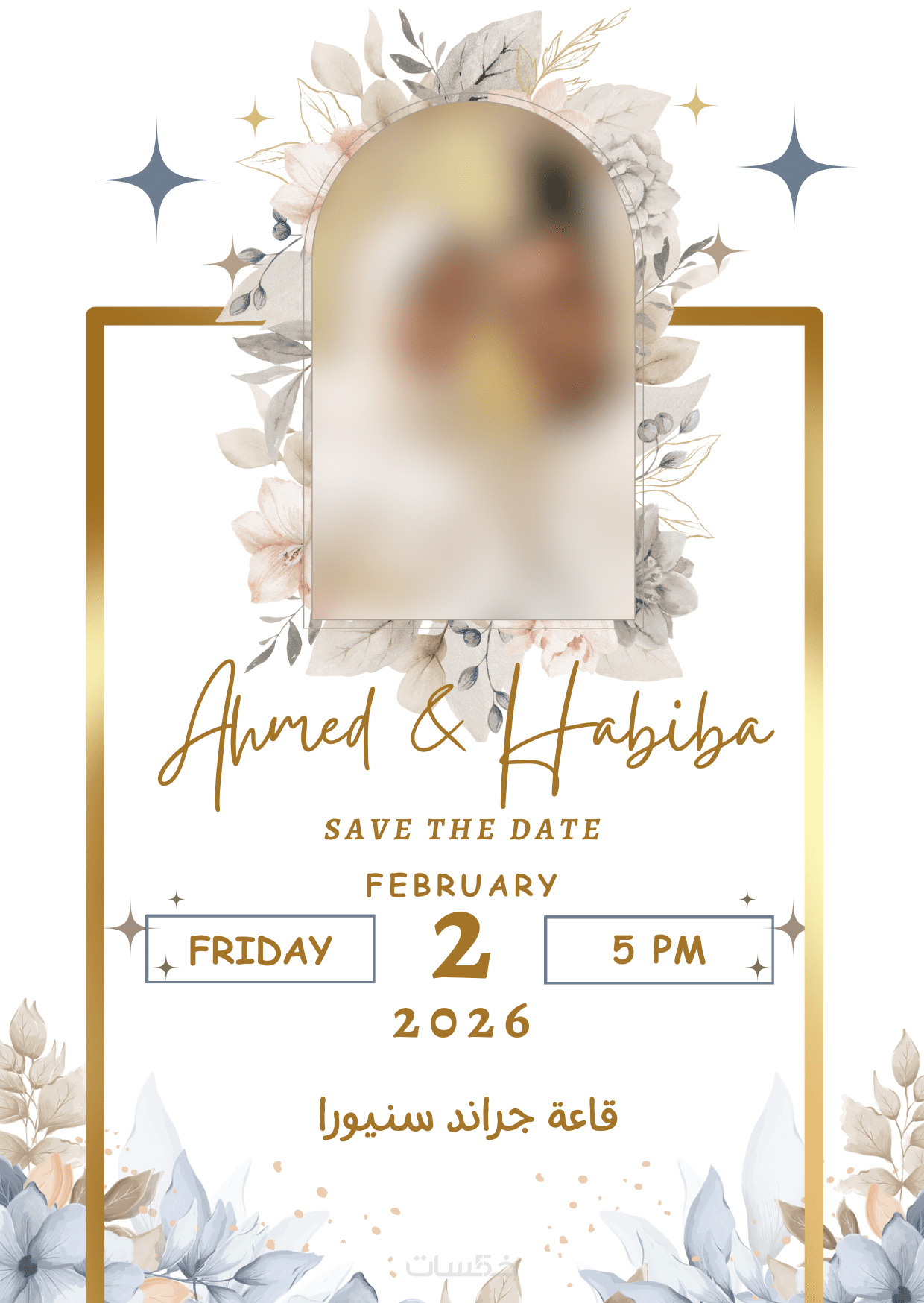 أنا بصمّم لك دعوة زواج مخصصة حسب ذوقك توصل إحساس فرحك من أول نظرة.