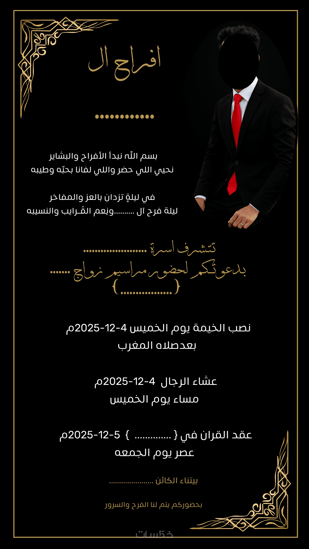 أنا محمد، مصمم متخصص في تصميم دعوات الزفاف بأسلوب عصري وأنيق يناسب مختلف الأذواق.
