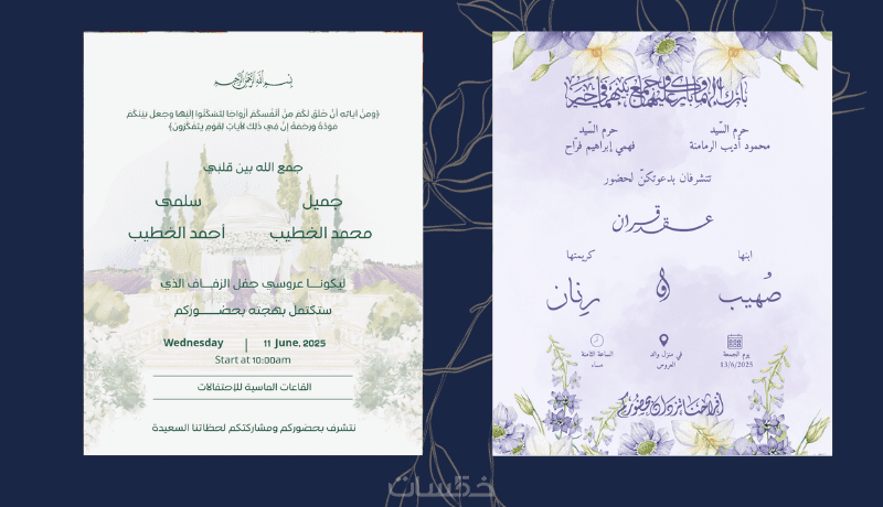 أقدّم خدمة تصميم دعوة زفاف رقمية مخصّصة تناسب ذوقكم وتفاصيل مناسبتكم، مع الاهتمام بالتنسيق والبساطة في التصميم.