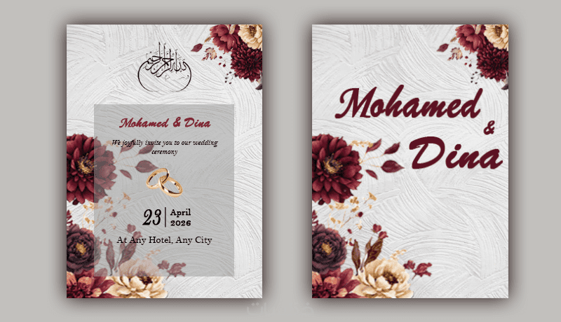 أقدم لك خدمة تصميم دعوات الزفاف والمناسبات بأسلوب يجمع بين الرقي الكلاسيكي والعصرية الرقمية، أهتم بأدق التفاصيل لضمان خروج دعوتكم بشكل يليق بمناسبتكم السعيدة