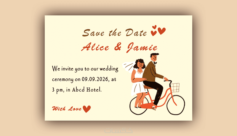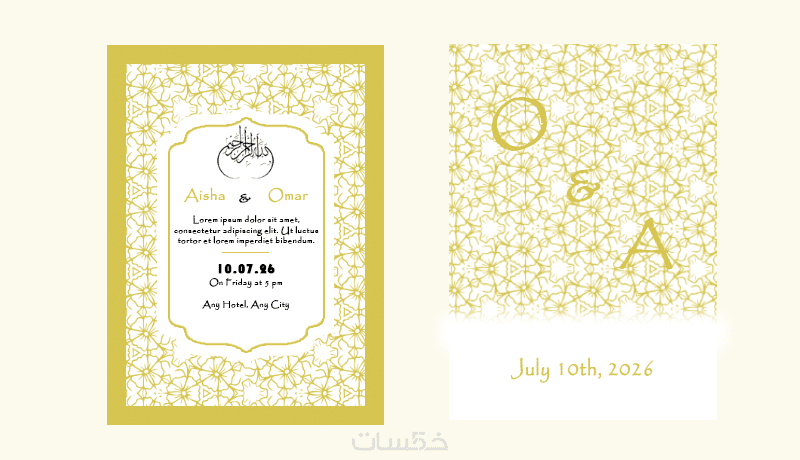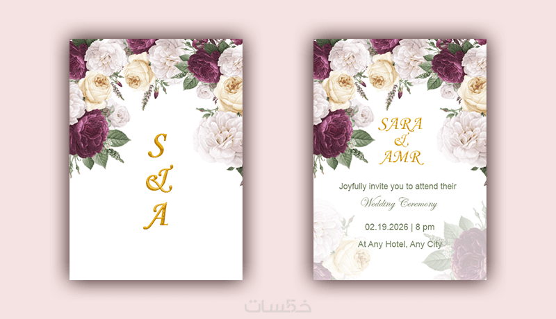 تصميم واحد فريد: دعوة زفاف مخصصة (وجه واحد أو وجهين) تعكس ذوقكم الخاص.
