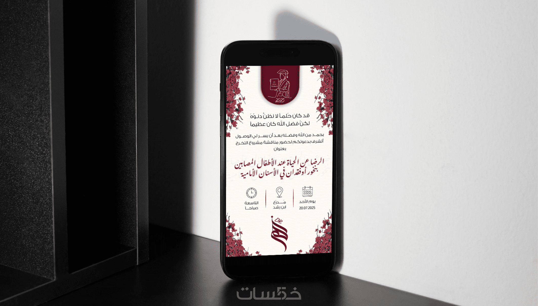 ويمكنك أن تطلب التصميم الذي ترغب به من حيث القالب والحجم واللون ونوع الخط والموسيقى وغيرها، كما تستطيع طلب ملفات التصميم كاملة من المصمم لتتمكن من طباعتها لاحقًا على نماذج ورقية.