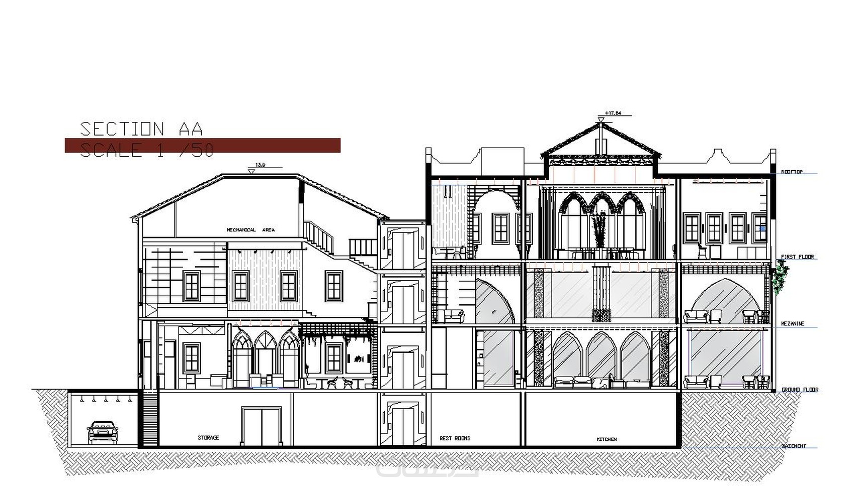* تصميم مسطح افقي + مقطع عدد 2 مع كافة المقاسات