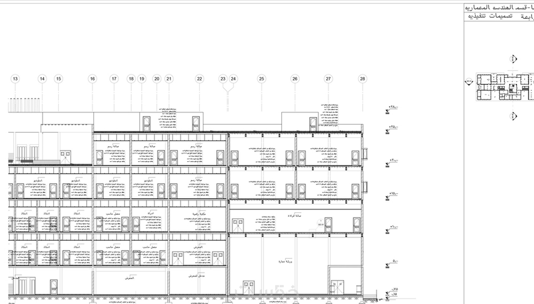 ٢. الواجهات والقطاعات بمقياس رسم مناسب