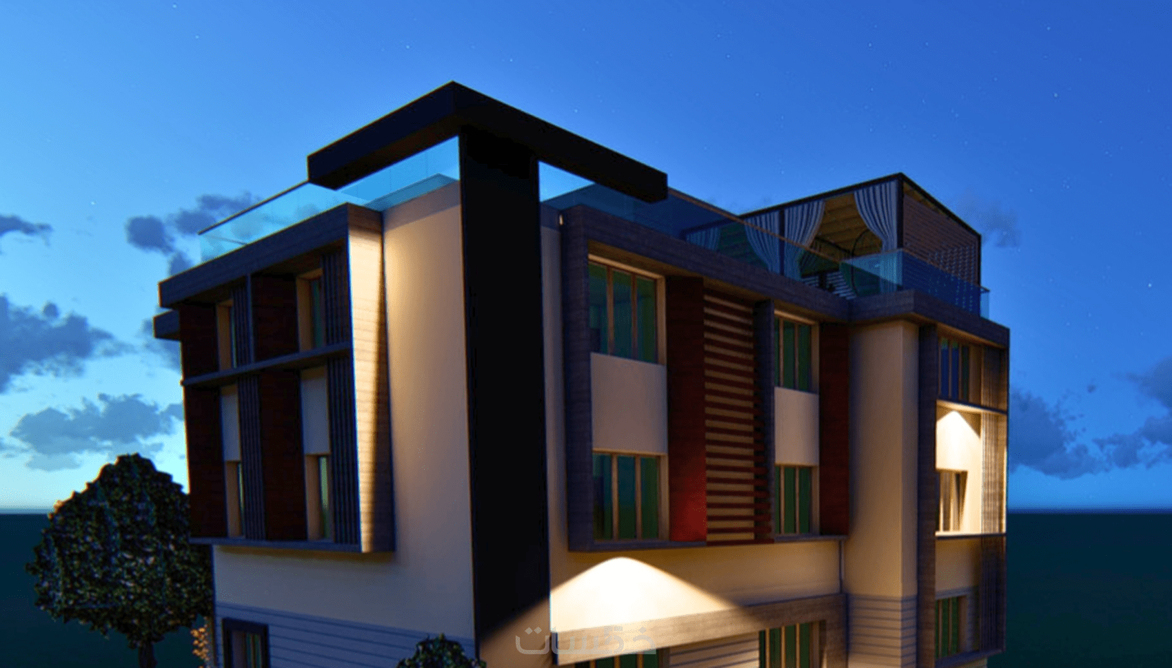 العمل عبارة عن تصميم فيلا 200 متر مربع من 4 طوابق