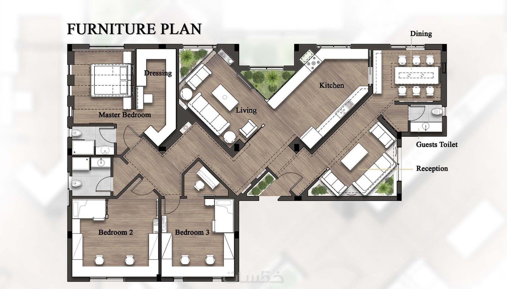 • تسليم نهائي Plan 2D الوان و صور Mood board عاليه الجوده بصيغه PDF و JPEG.