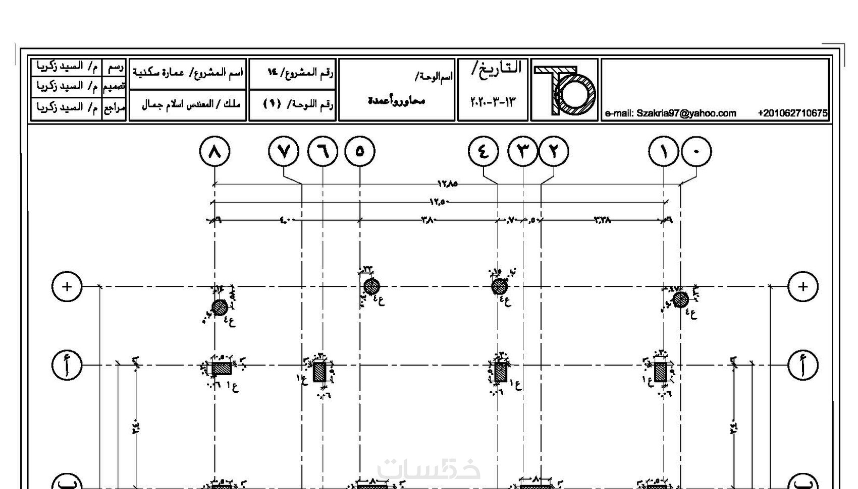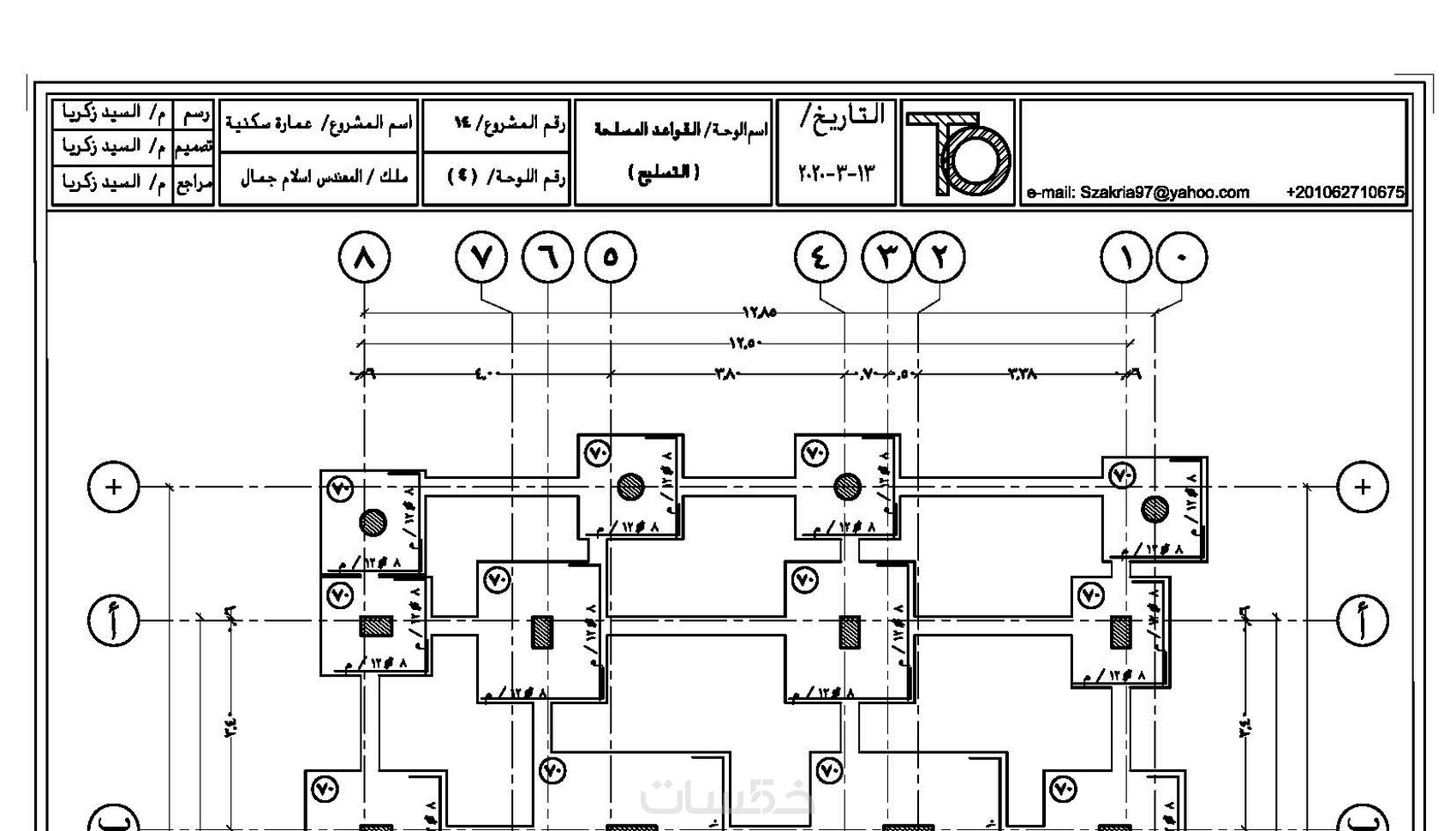 يتم تصميم المنشاء وعمل نوتة حسابية للمشروع وعمل القطاعات المطلوبة واخراج اللوحات الانشائية كاملة.