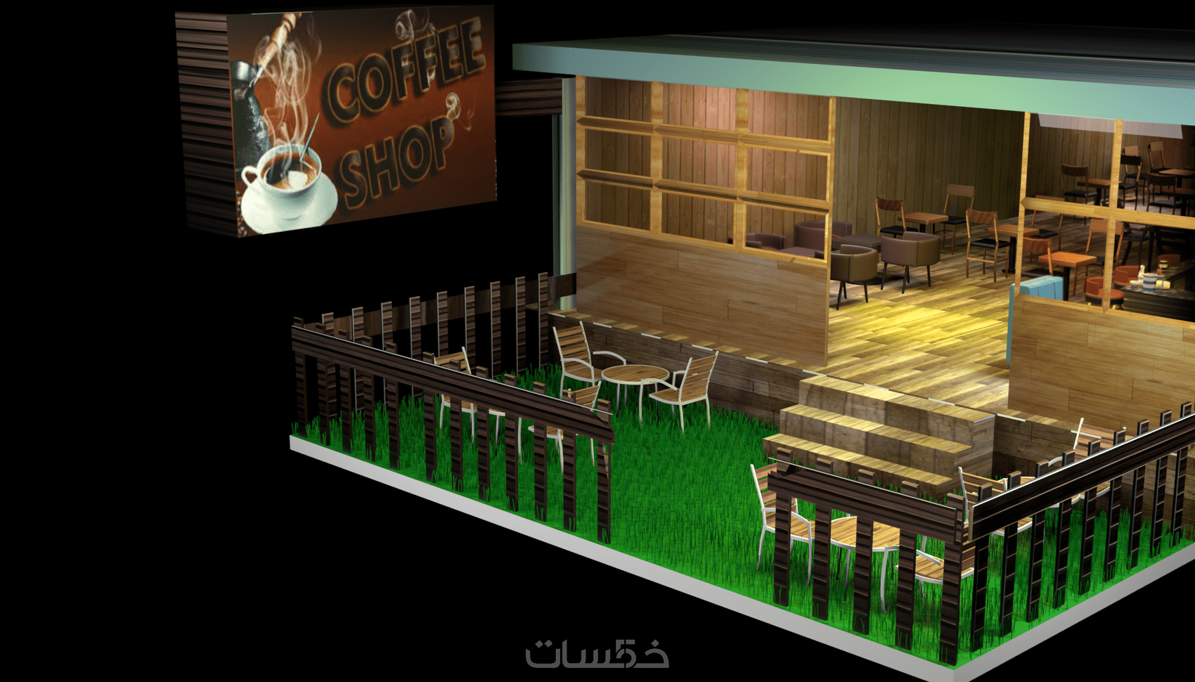 تصميم غرفة استوديو تصوير وكافي شوب صغير وغرفة مكتبية