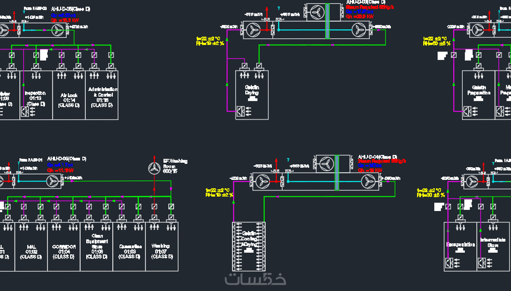 تصميم انظمة التهوية والتكييف والتدفئة للمبانى السكنية والتجارية والصناعية (للمنازل والفلل والمستشفيات والفنادق والمكاتب والمصانع ومعامل الأدوية..) حسب المعايير العالمية ASHRAE و GMP وغيرها.