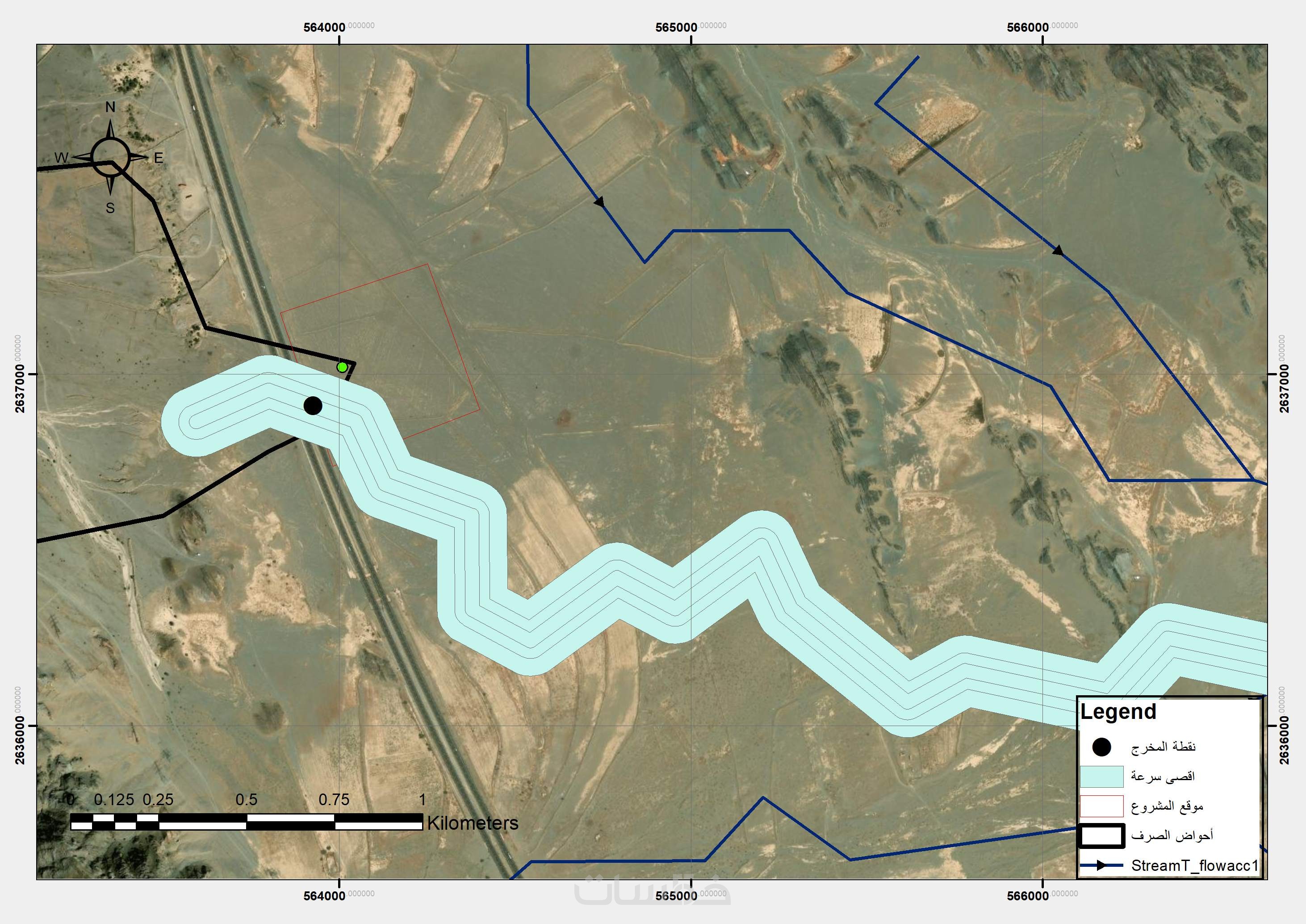استخراج خريطة واحدة بصيغة (PDF أو Image) توضح اتجهات المجاري المائية ورتب الأودية.