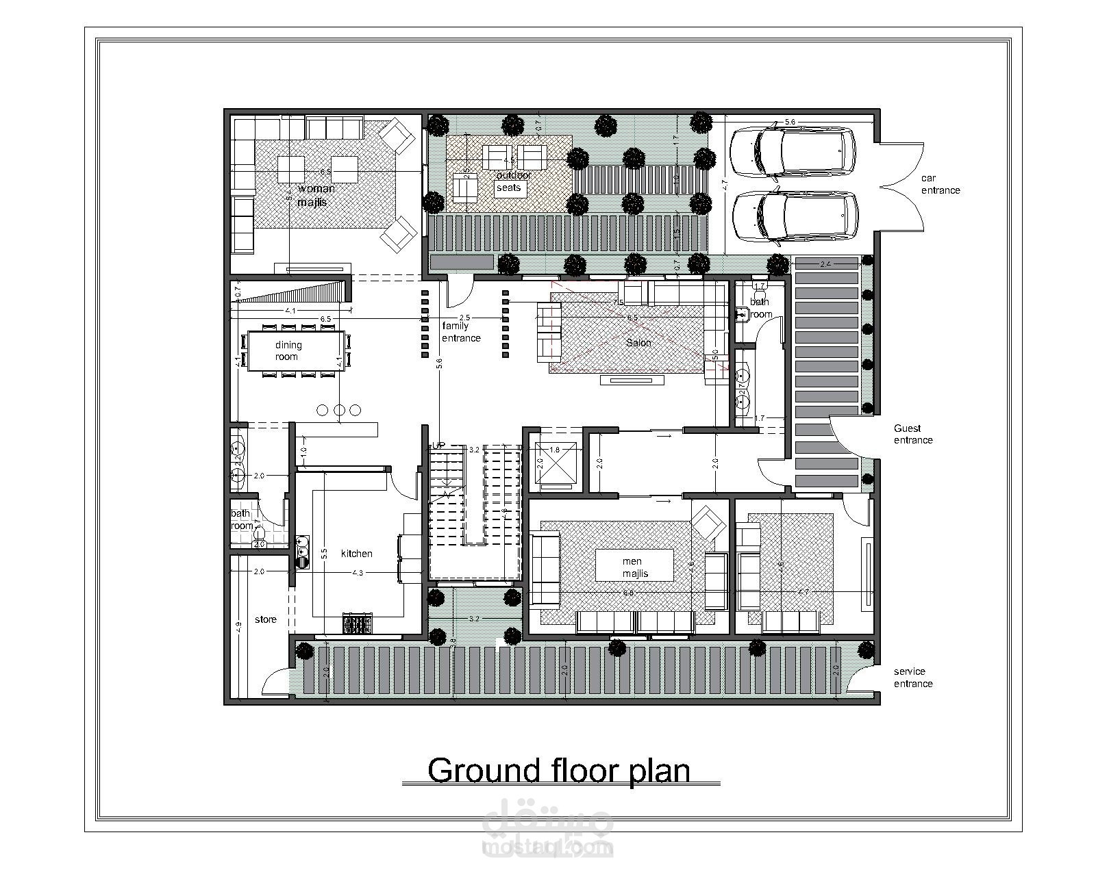 تصميم مخططات معمارية كاملة للادوار مساحة 400متر مربع بالفرش والابعاد