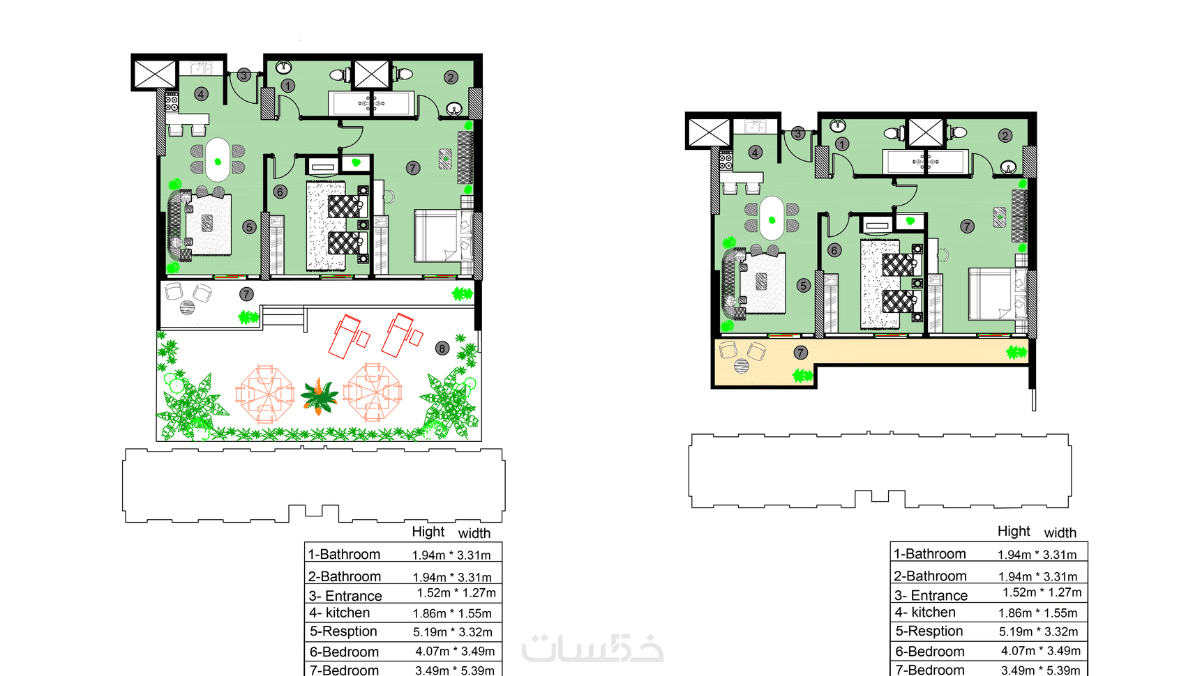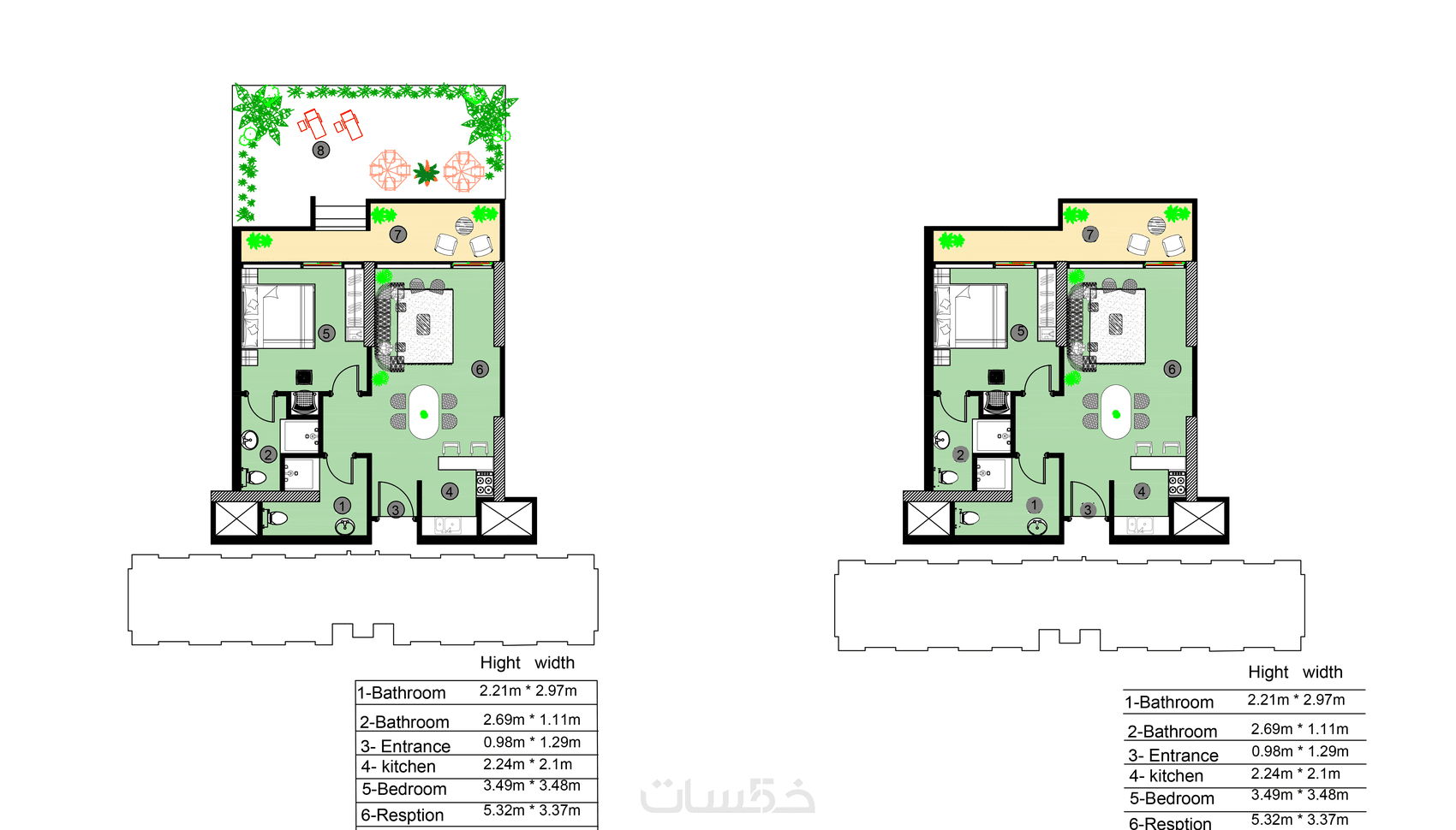 الخدمة لكل 70 متر 2 رسم المخطط الواحد