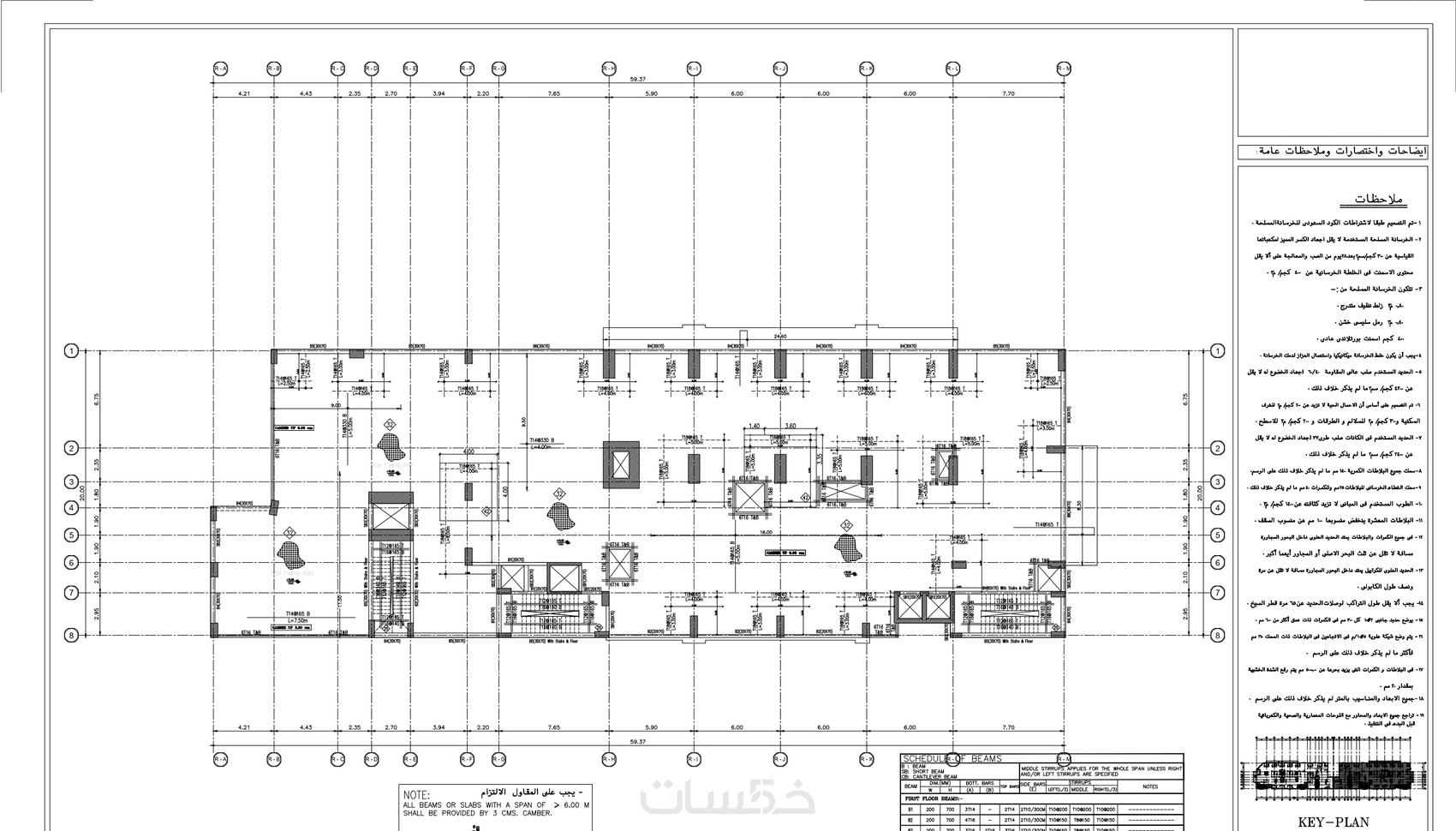 مع القيام بالنمذجة لكل العناصر (الاعمدة والكمرات والاسقف والميد والقواعد)