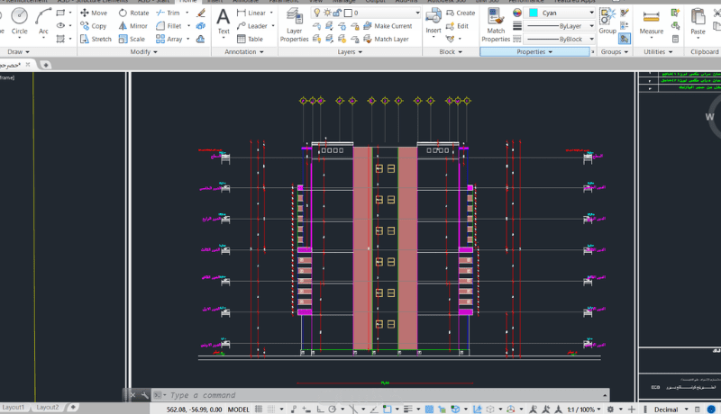 عمل قطاعين في المخطط و توضيح الارتفاعات