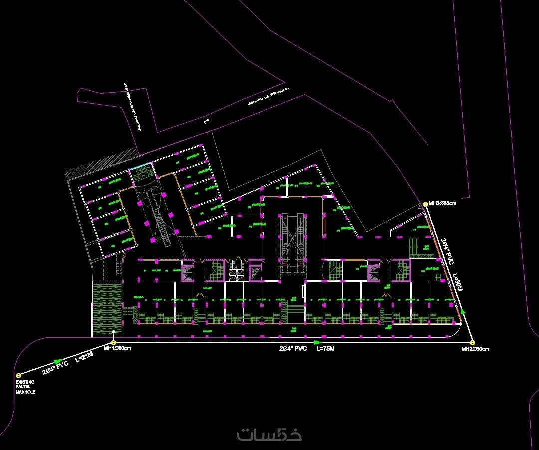 ١. رسم المخططات المعمارية و المدنية و الصرف الصحي بإستخدام AutoCAD 2D، لجميع المساقط.