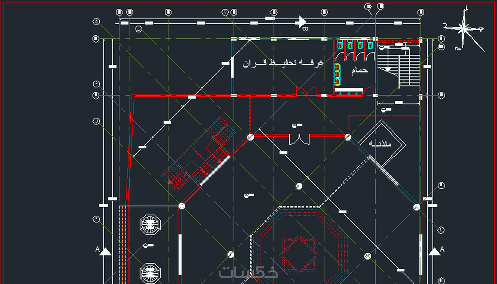 تصميم لوحات المسقط الافقى لجميع الادوار والواجهات والقطاعات الخاصه بالمبنى على برنامج autocad