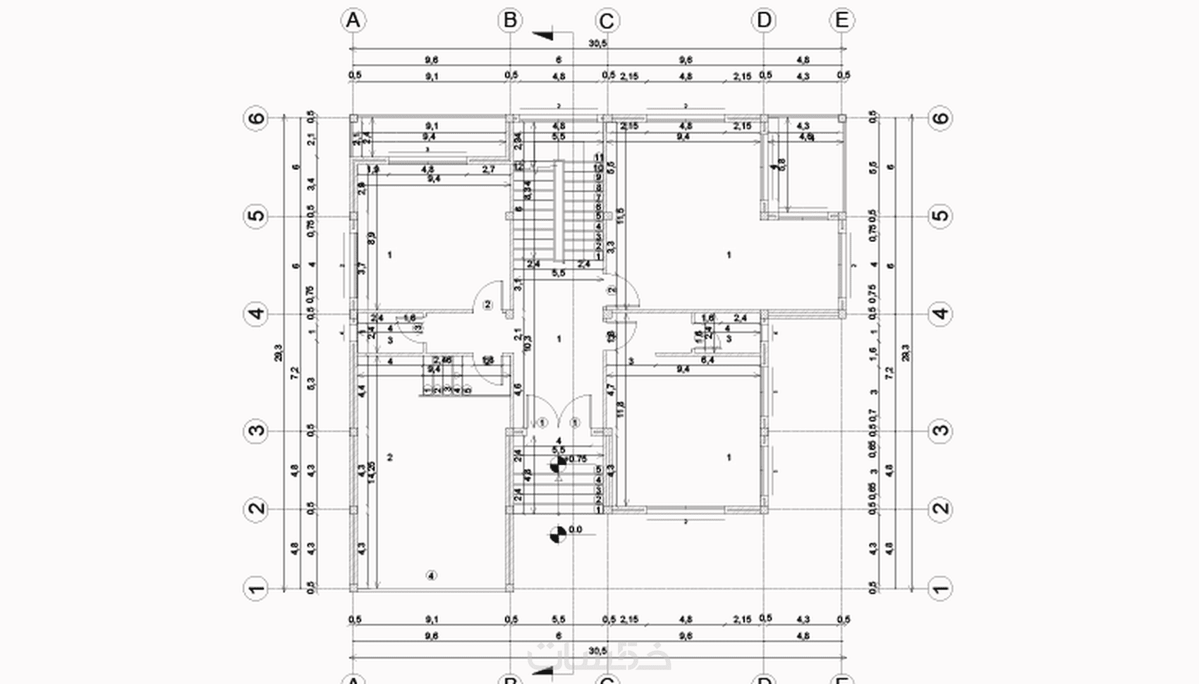 5- تحويل مخطط معماري إلى مخطط تنفيذي بالمحاور والأبعاد.