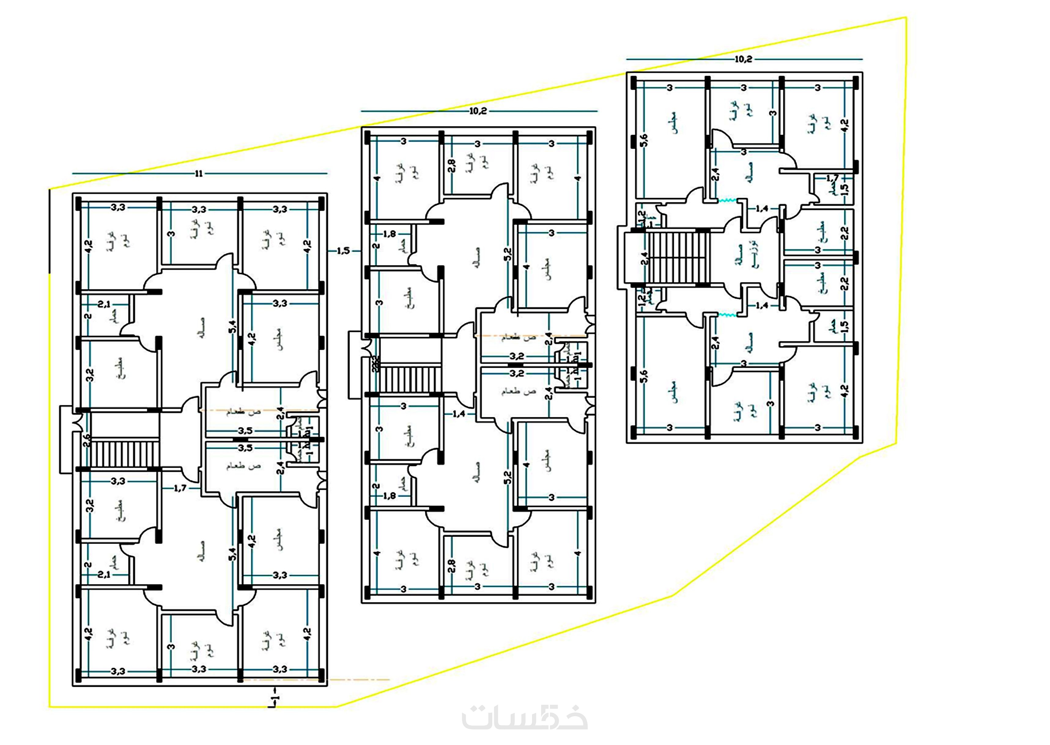 تحهيز مخطط الدور المتكرر فوق الارضي تنفيذي لكل 100 متر مربع