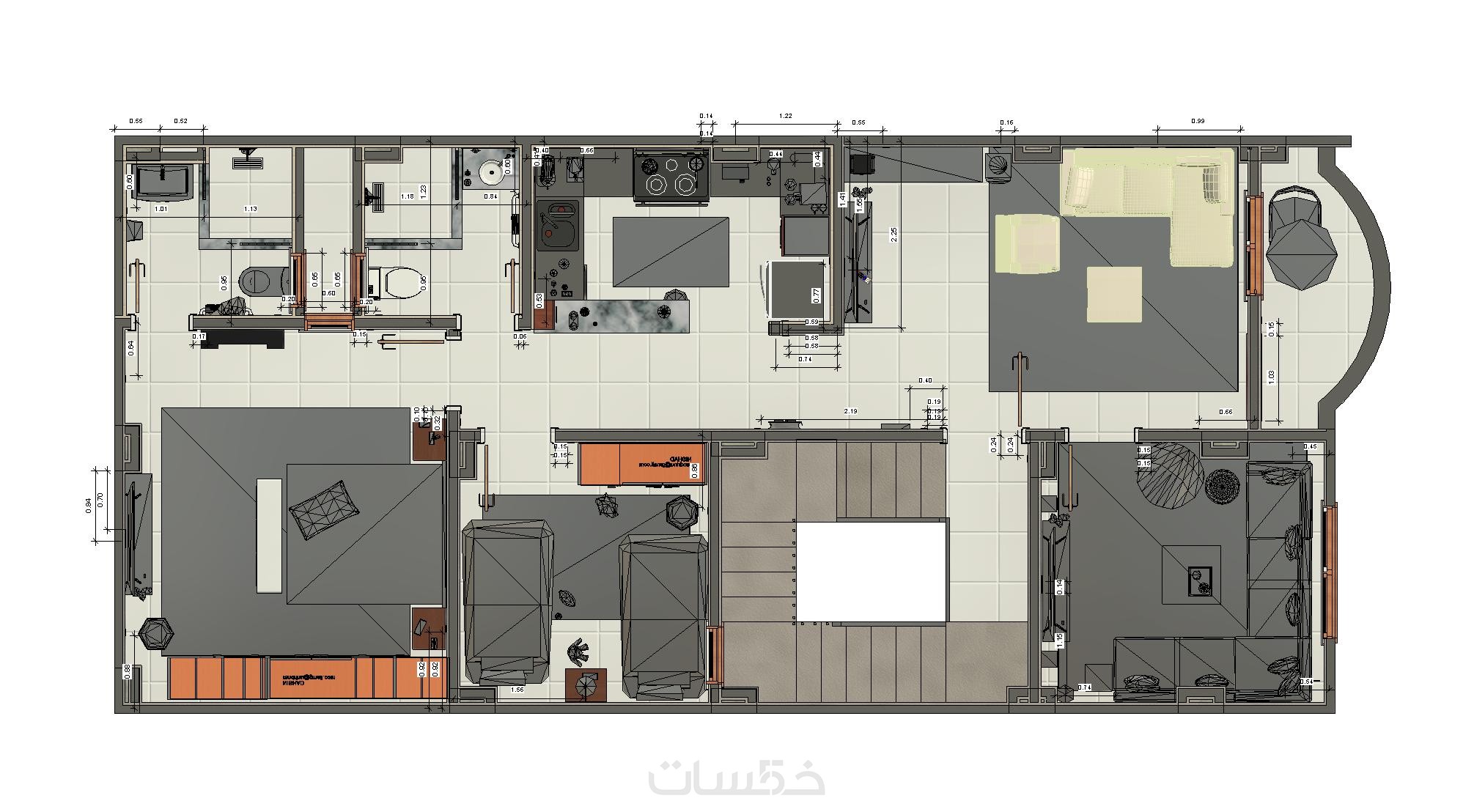اضافة الفرش والاثات بما يتناسب مع المعايير الهندسة ومساحات الغرف والفراغات لدي مشروعك