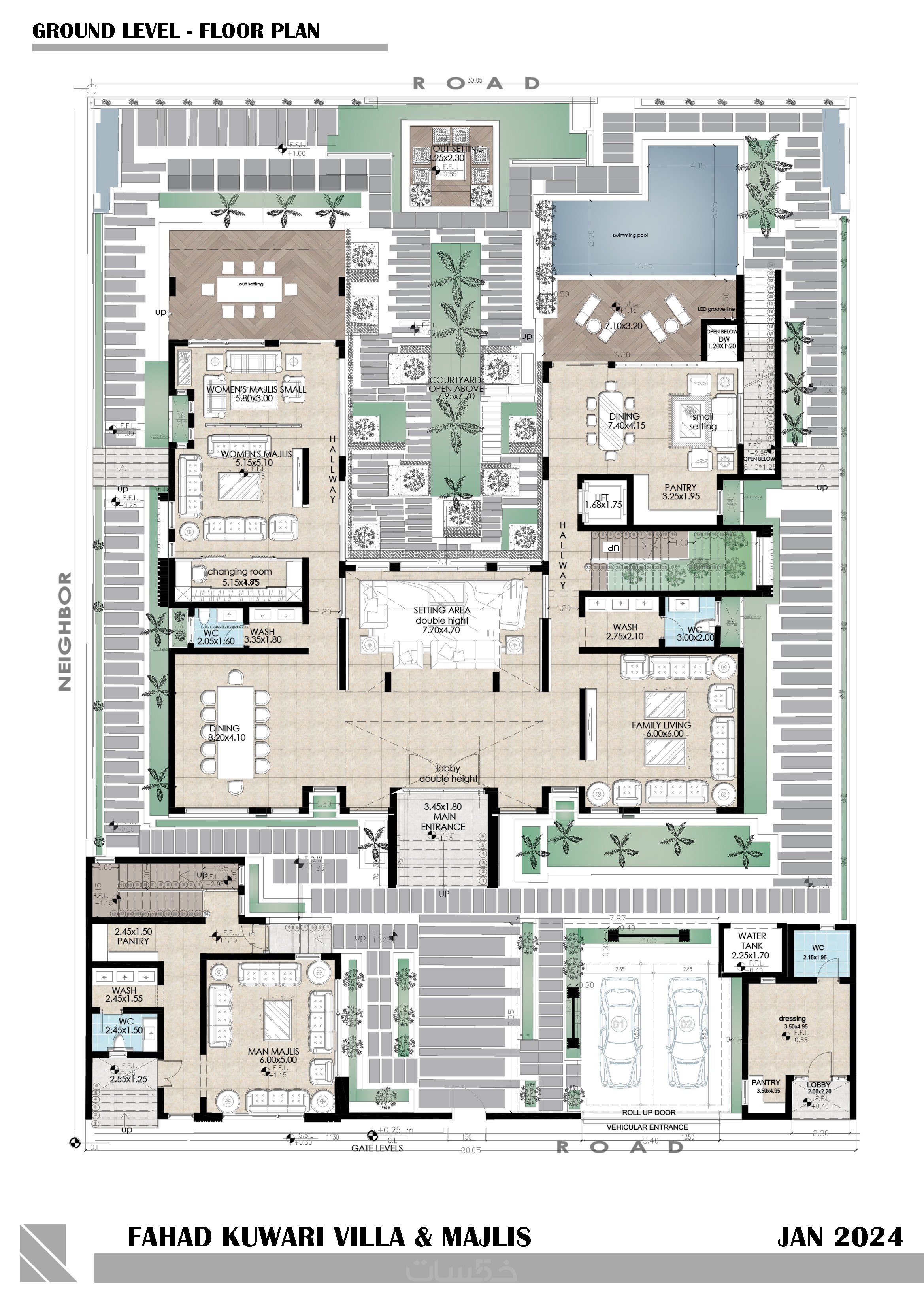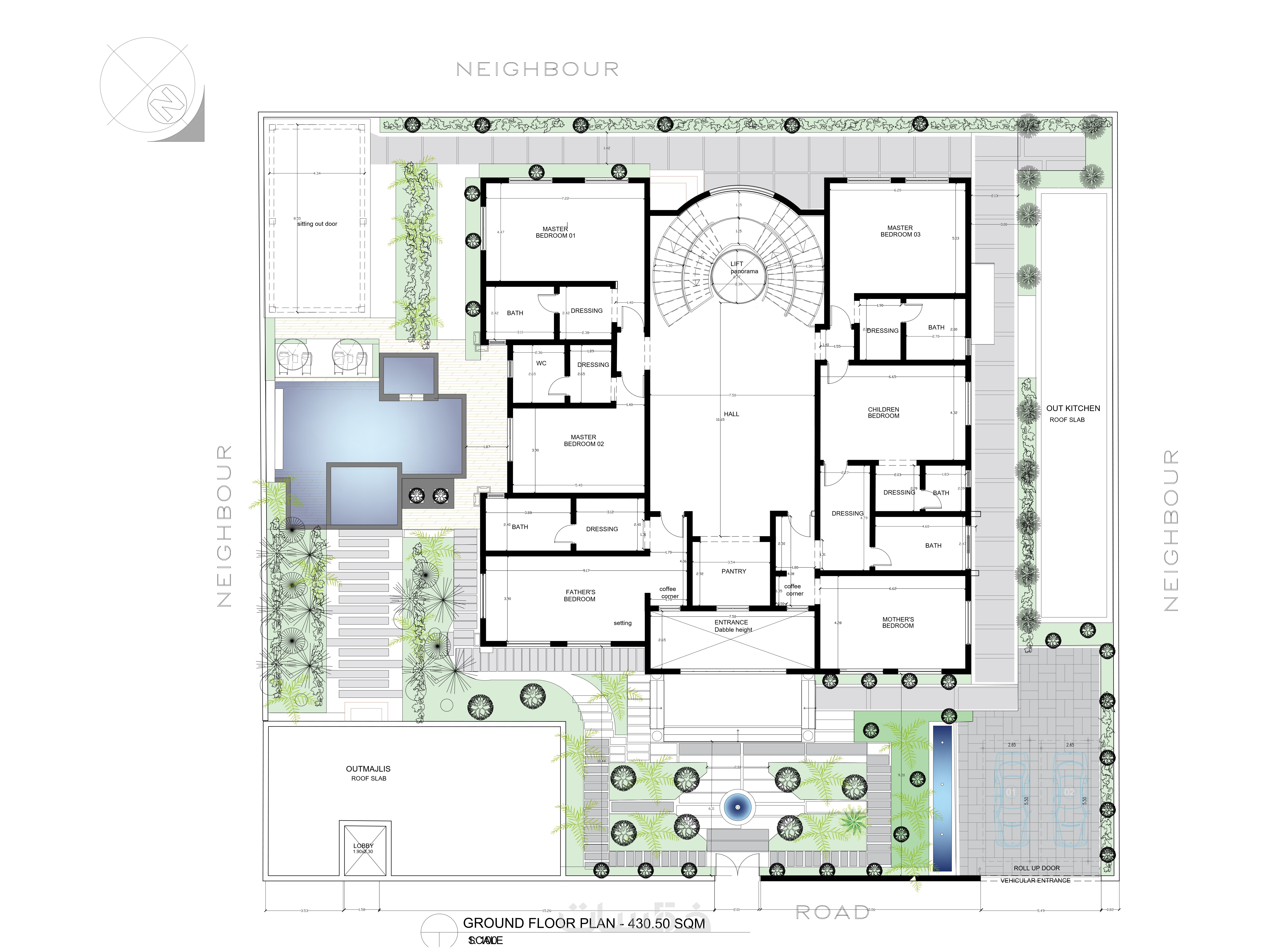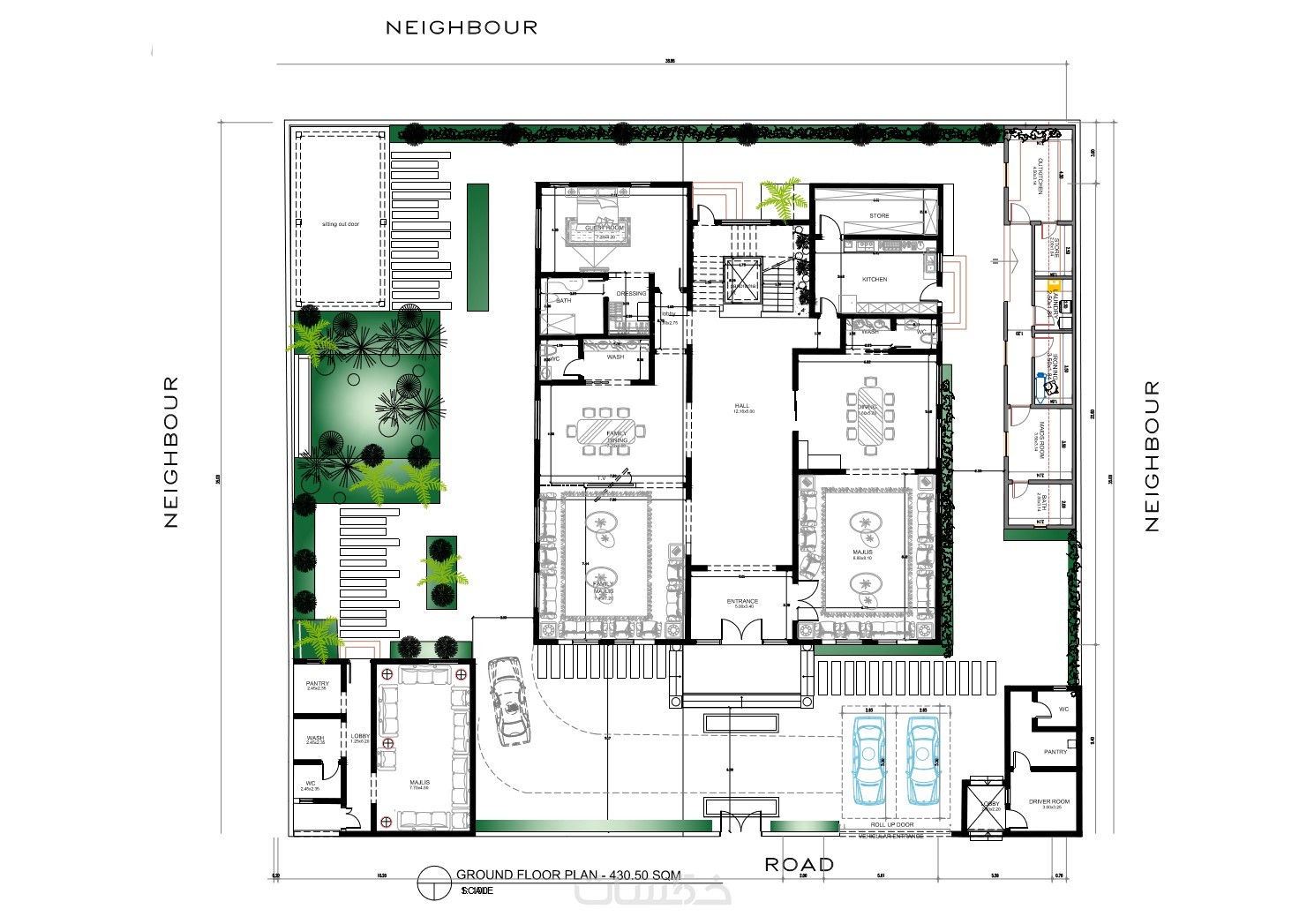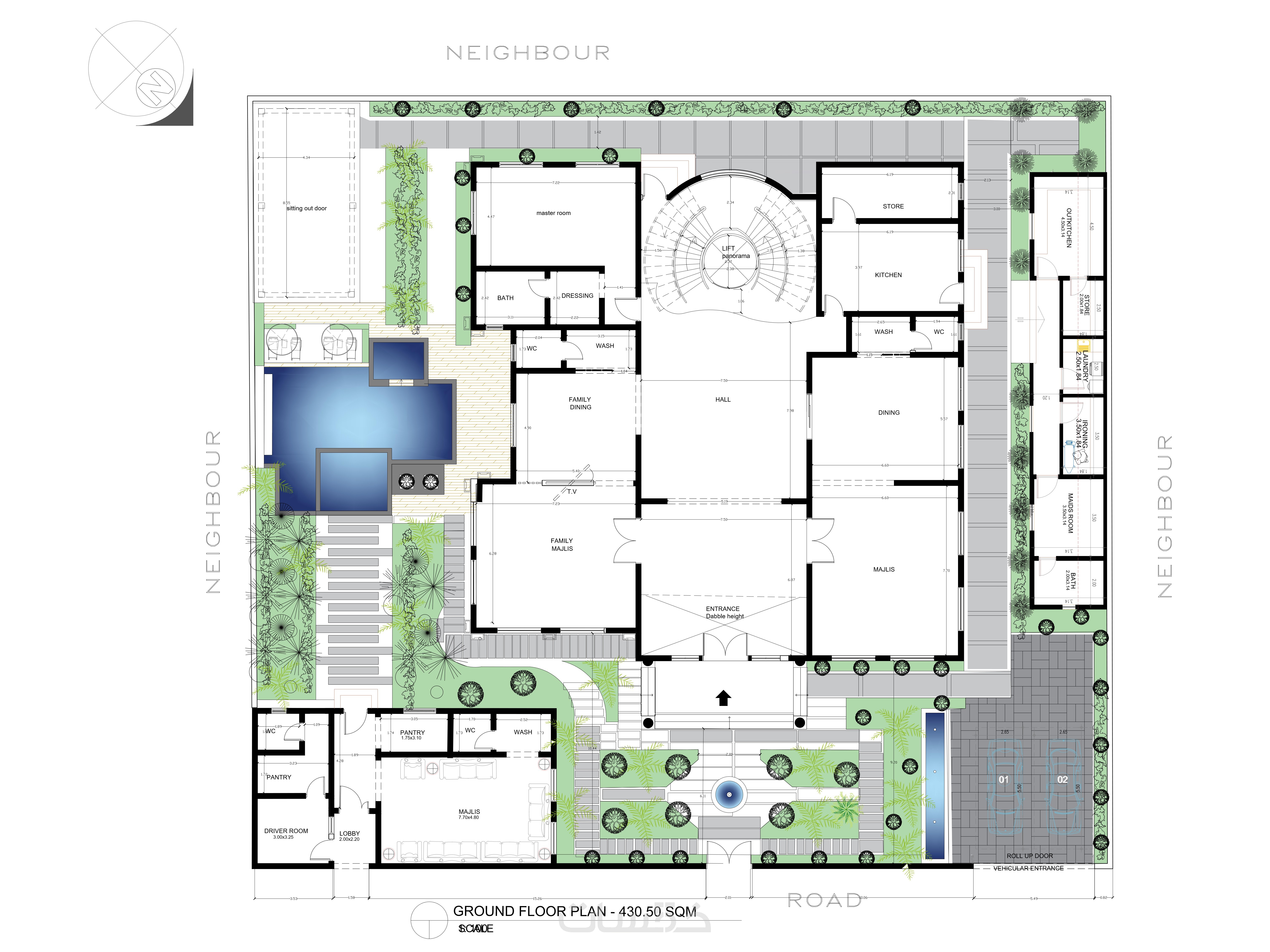 تصميم بمساحة 300 متر مربع الي 500 متر مربع